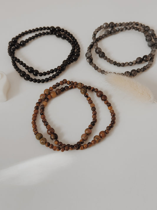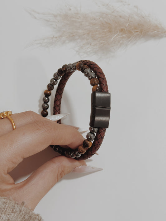 Pulseira Homem Hematite e Olho de tigre ( dupla )