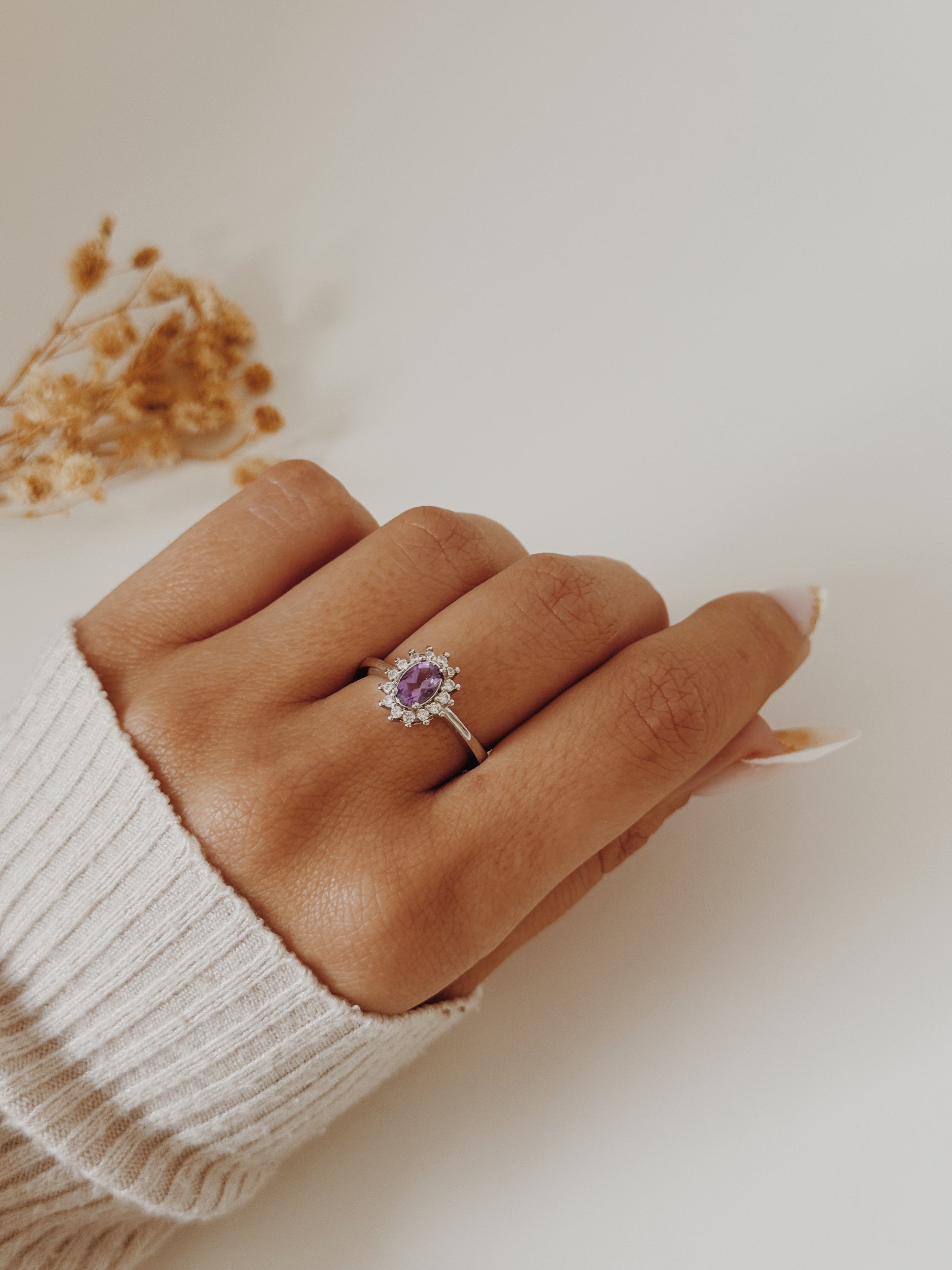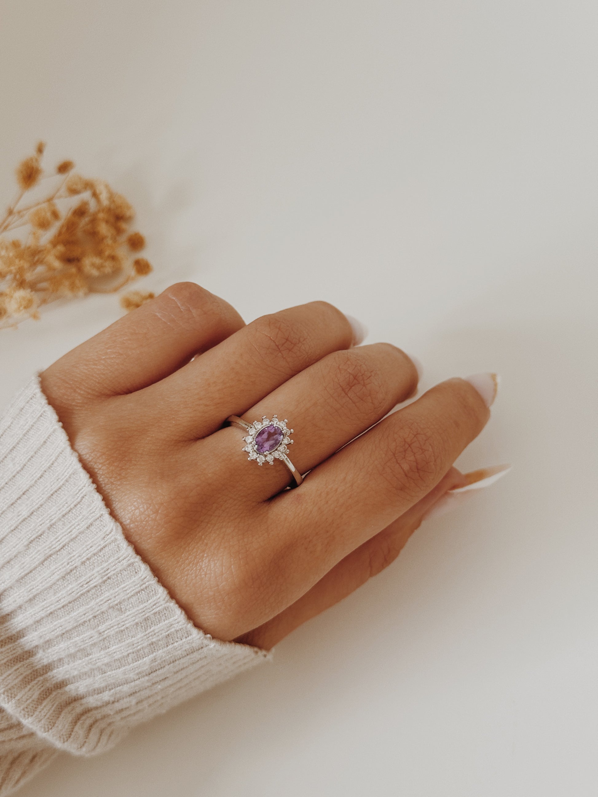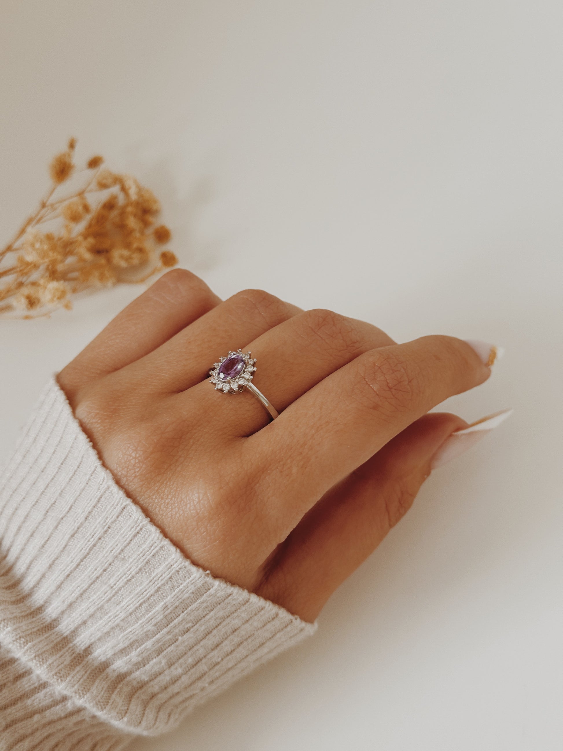 Este anel com Ametista é um convite ao silêncio interior e à conexão espiritual. Conhecida como a pedra da espiritualidade e da transmutação, a Ametista ajuda a acalmar a mente, aliviar o stress e fortalecer a intuição. É também uma poderosa aliada para proteção energética e clareza mental.