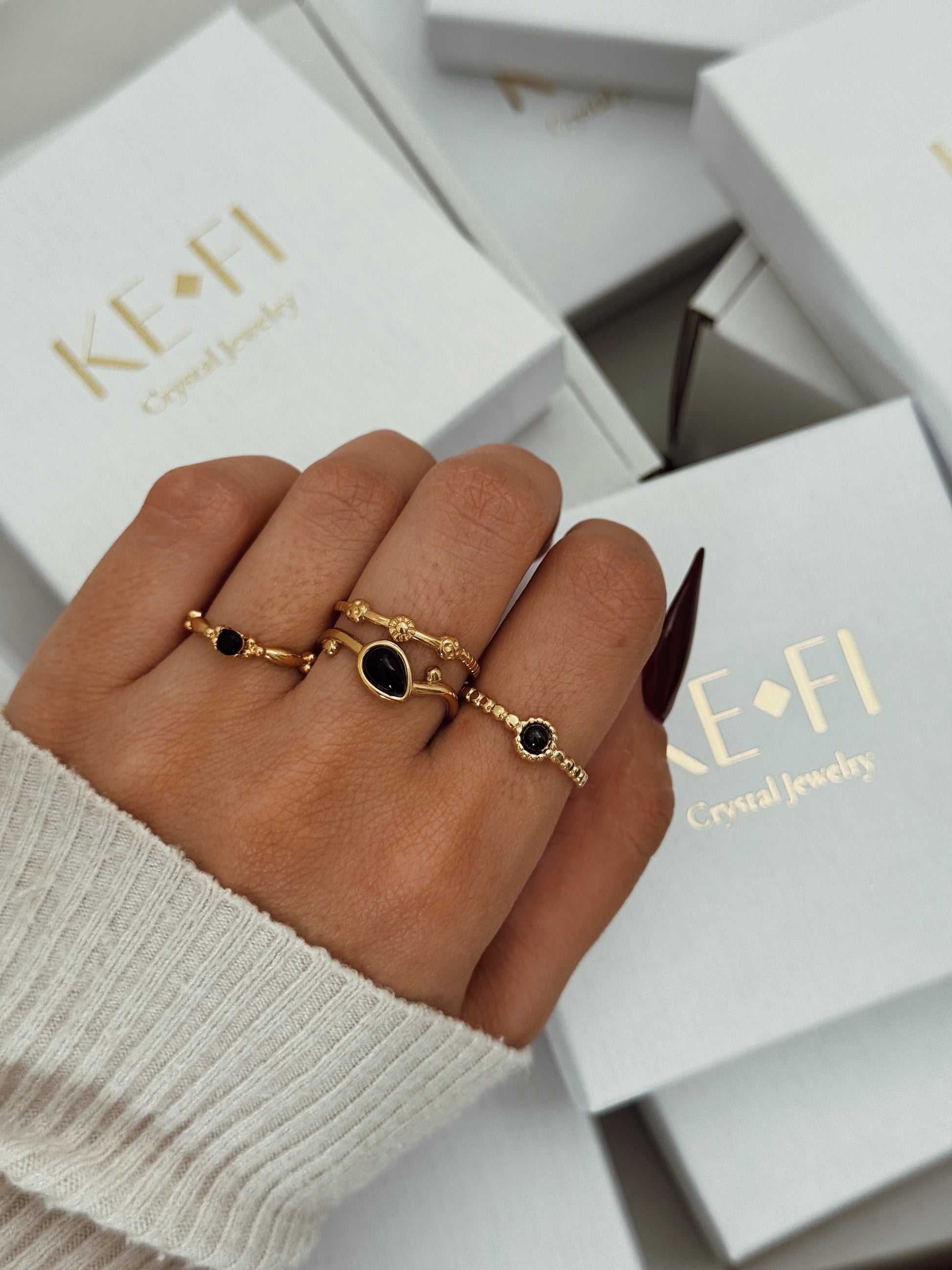 O anel Lyora Onix é o amuleto perfeito para quem deseja caminhar com força e estabilidade. Este cristal é conhecido por proteger contra energias negativas, reforçar a autoconfiança e ajudar a manter o foco mesmo nos momentos de mudança. A sua cor negra simboliza o poder interior e a segurança energética , um lembrete de que estás sempre protegida, onde quer que vás.