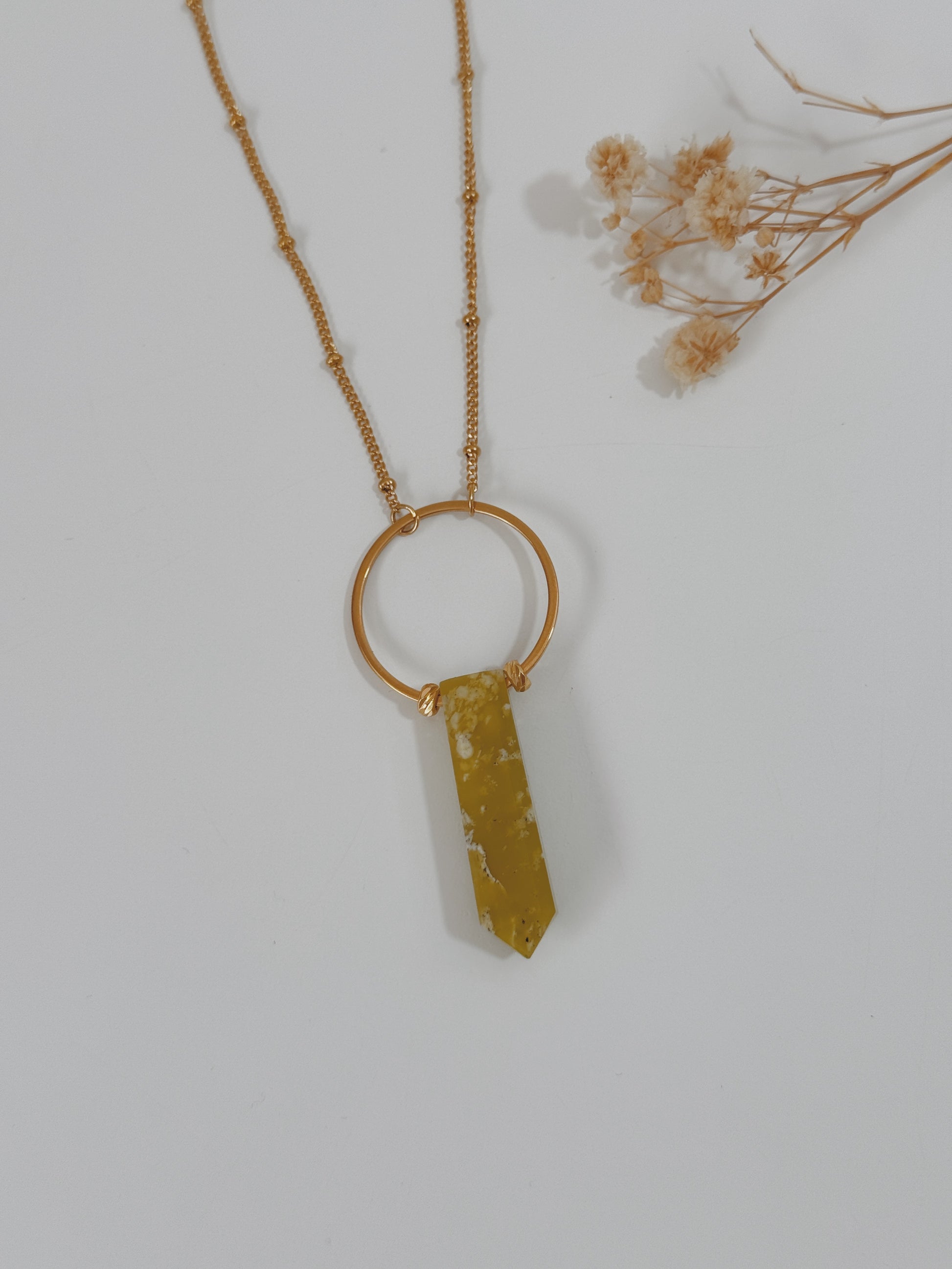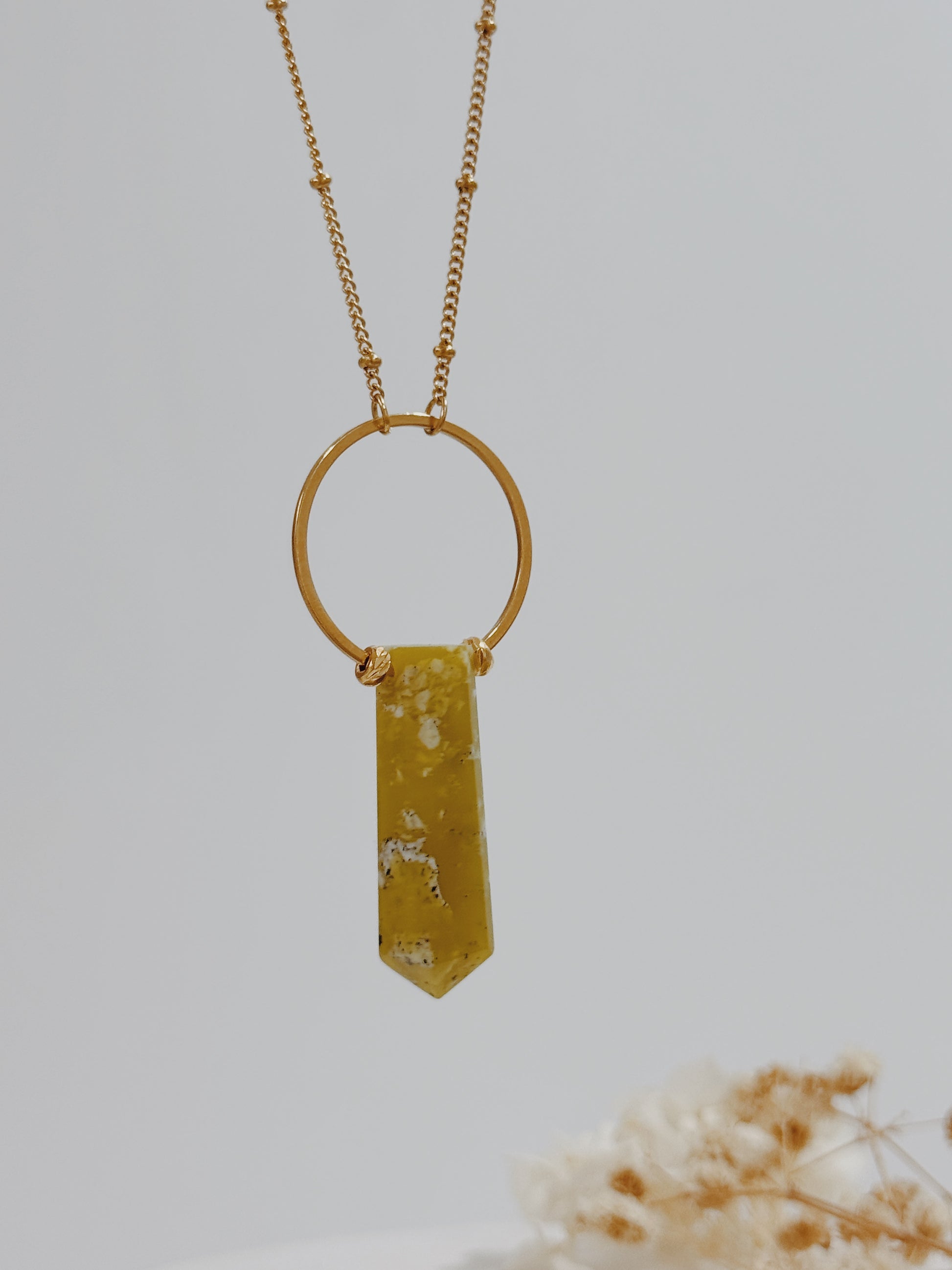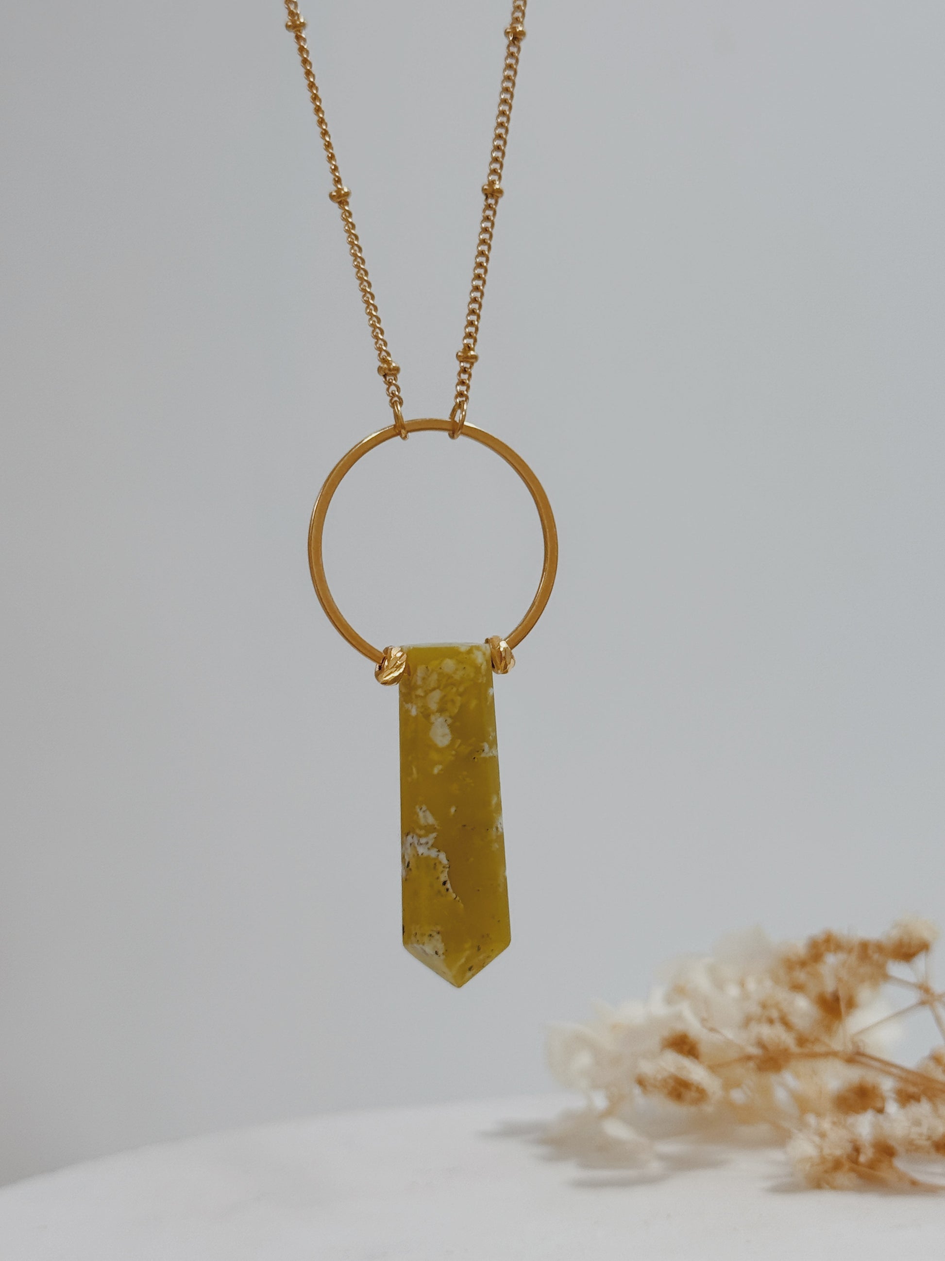 O colar Agni é um símbolo de transformação na tua vida. Composto por uma bela Turmalina Verde, esta peça é um lembrete da tua capacidade de renascer e brilhar.