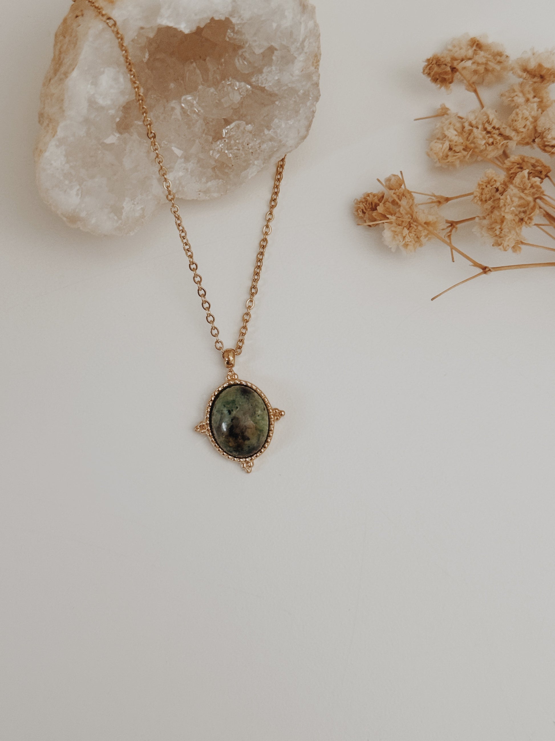 Com uma beleza vibrante, este colar é um verdadeiro amuleto de expressão pessoal. A Turquesa é conhecida por atrair sorte, afastar energias negativas e estimular a comunicação autêntica. O seu tom esverdeado traz frescura, leveza e um toque boho que nunca sai de moda. Uma peça versátil, perfeita para iluminar o teu dia e complementar qualquer look com cor e significado.