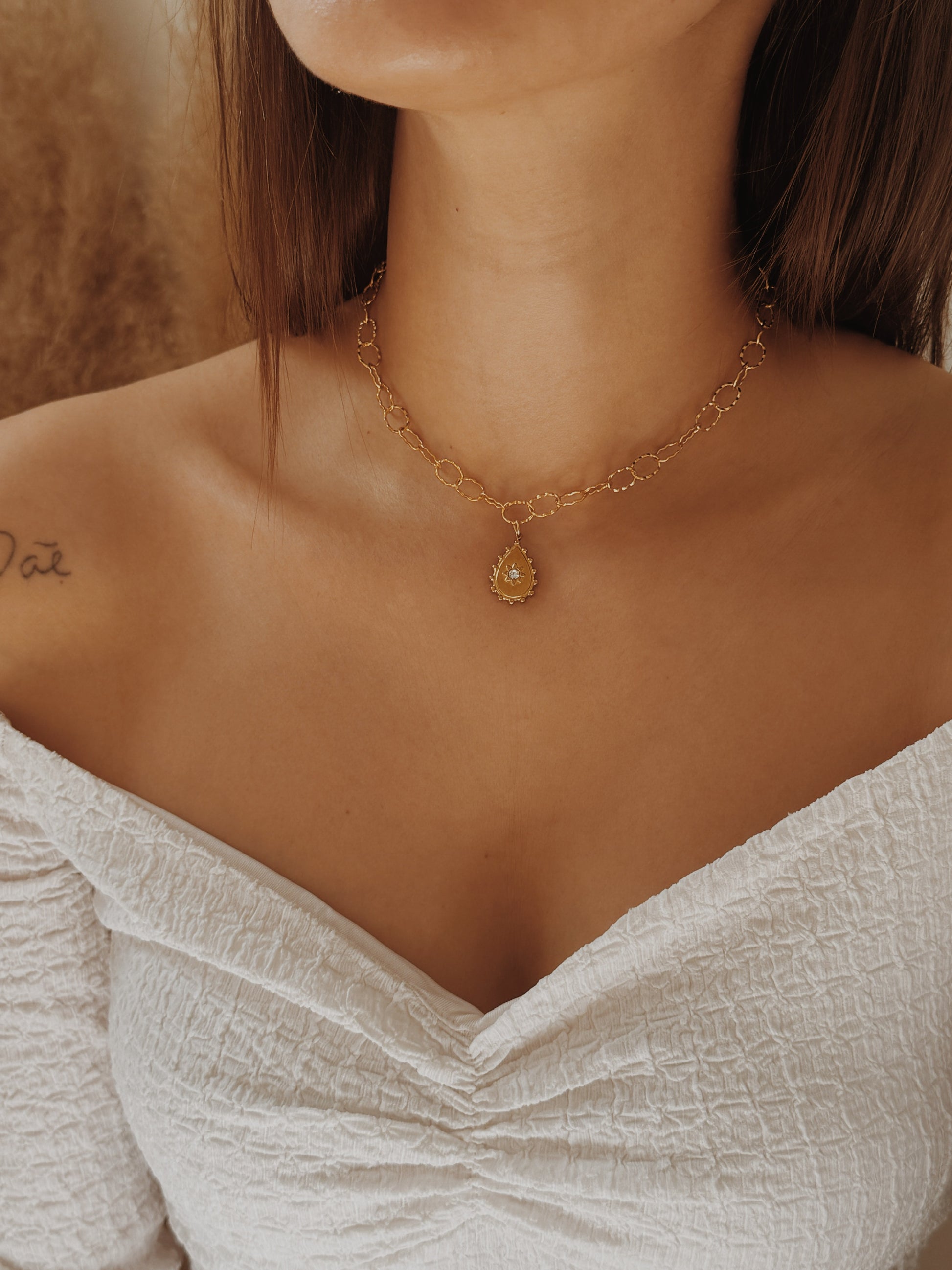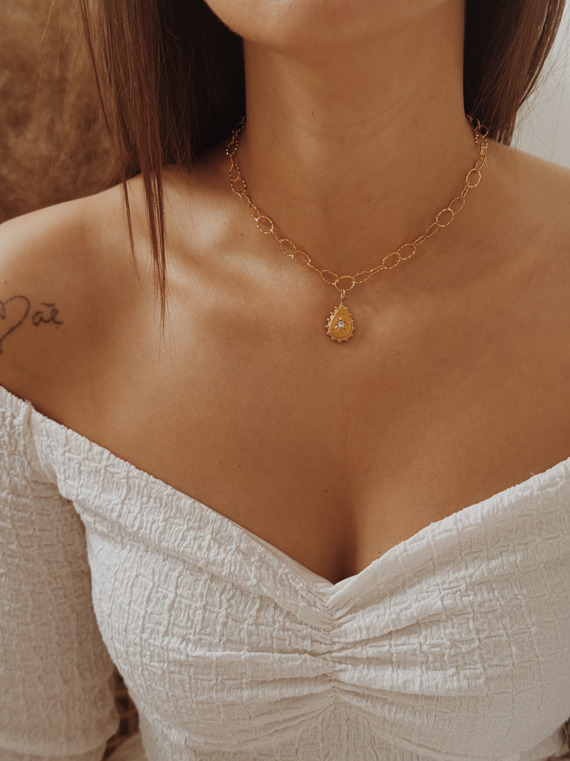 Criado para almas que procuram destacar-se pela simplicidade e autenticidade, este colar derrete corações e pode ser utilizado como forma de gargantilha , bem junto ao pescoço.