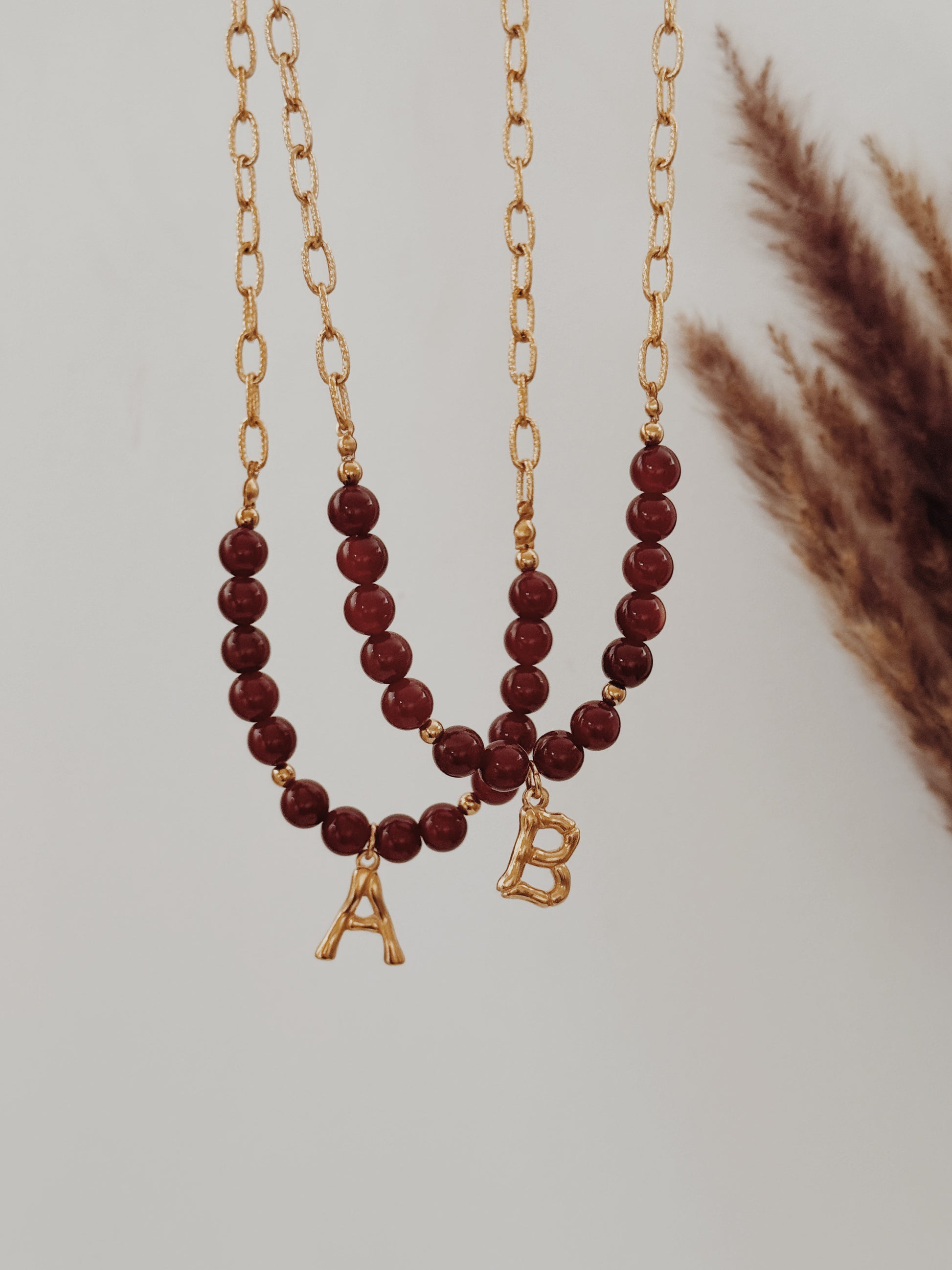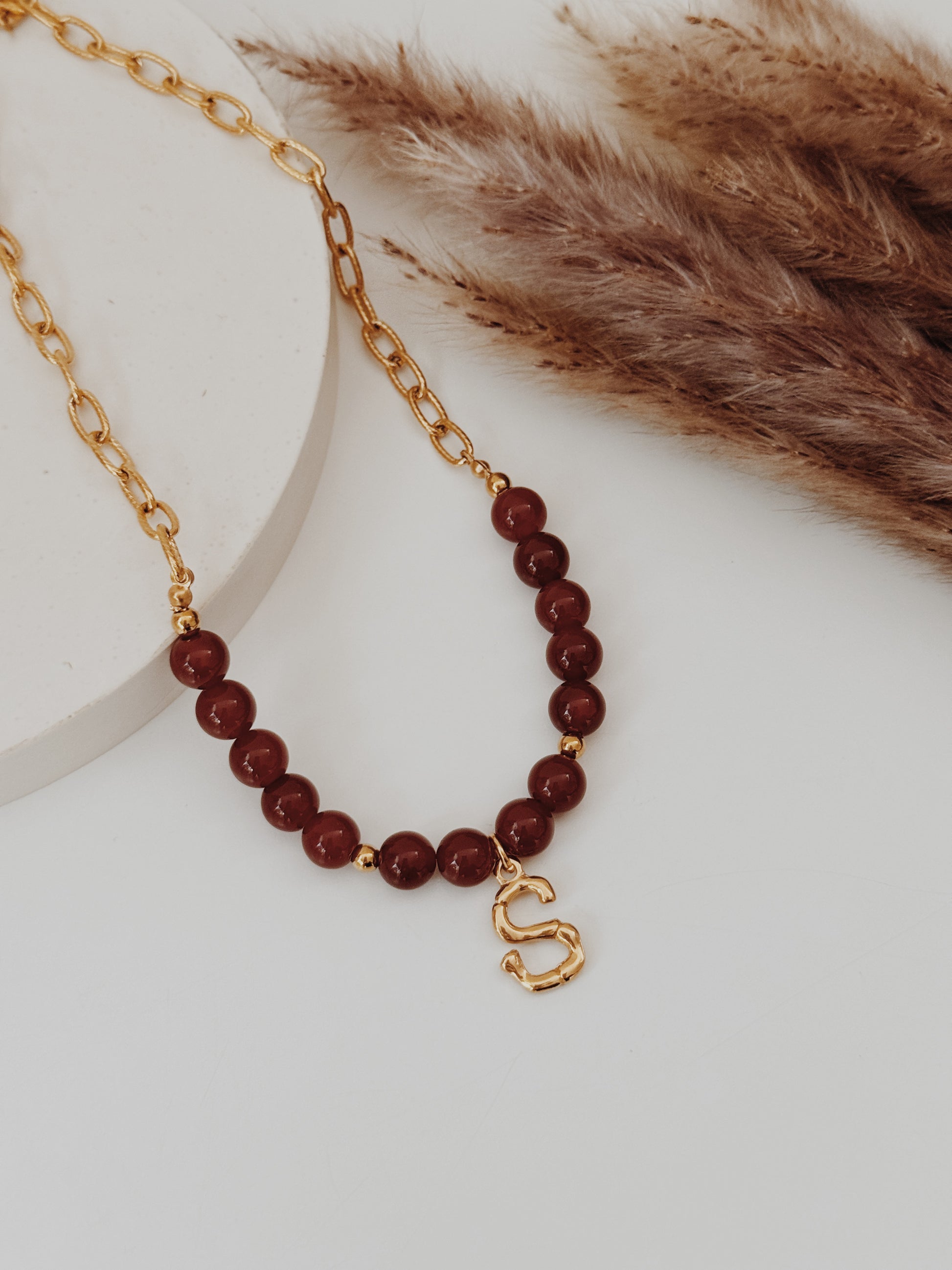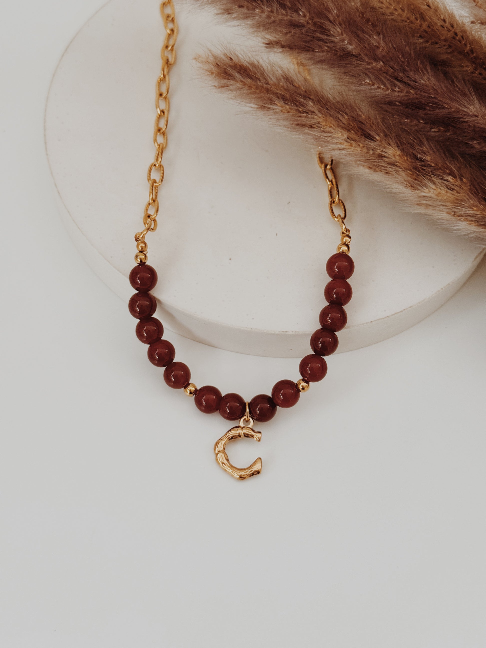 A Cornalina é o cristal da vitalidade, da motivação e da confiança, a energia que mantém o fogo aceso mesmo nos dias frios. Este colar une a força deste cristal à tua inicial, criando uma peça personalizada e cheia de simbolismo.