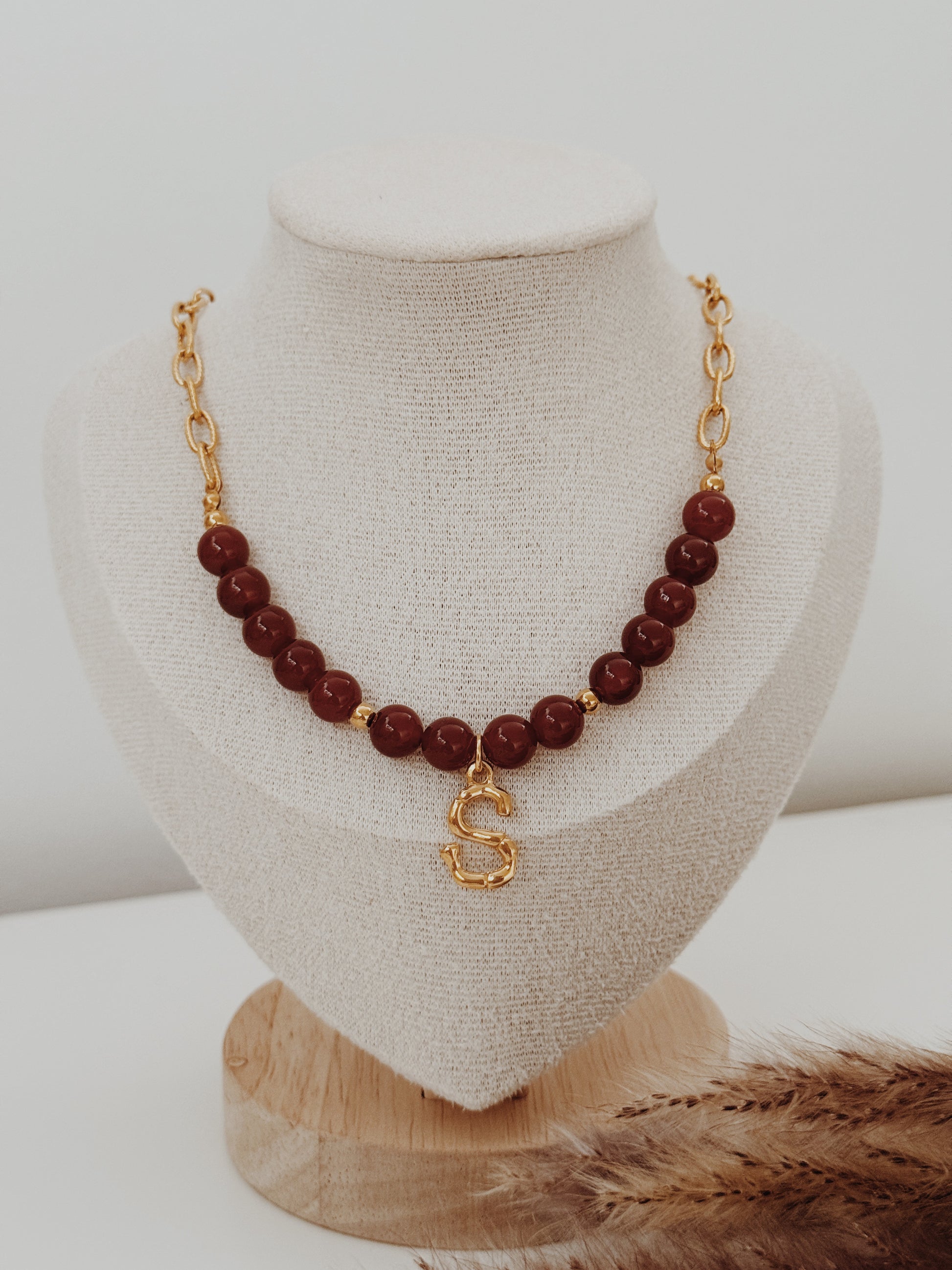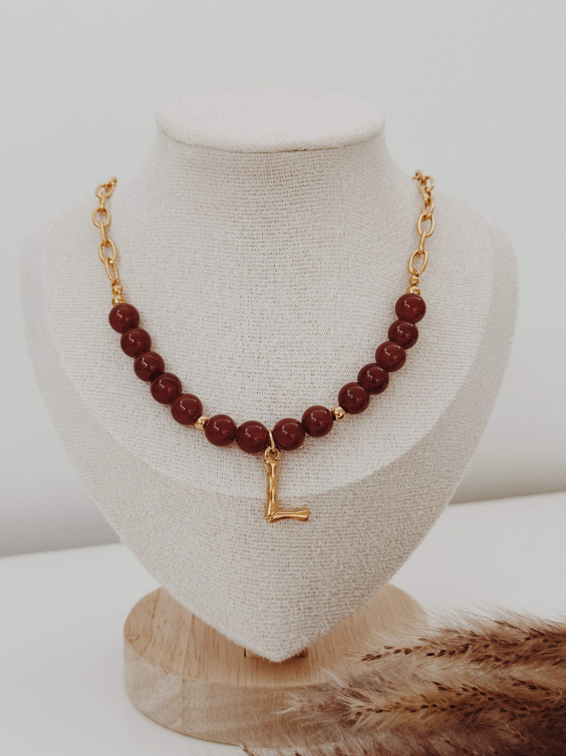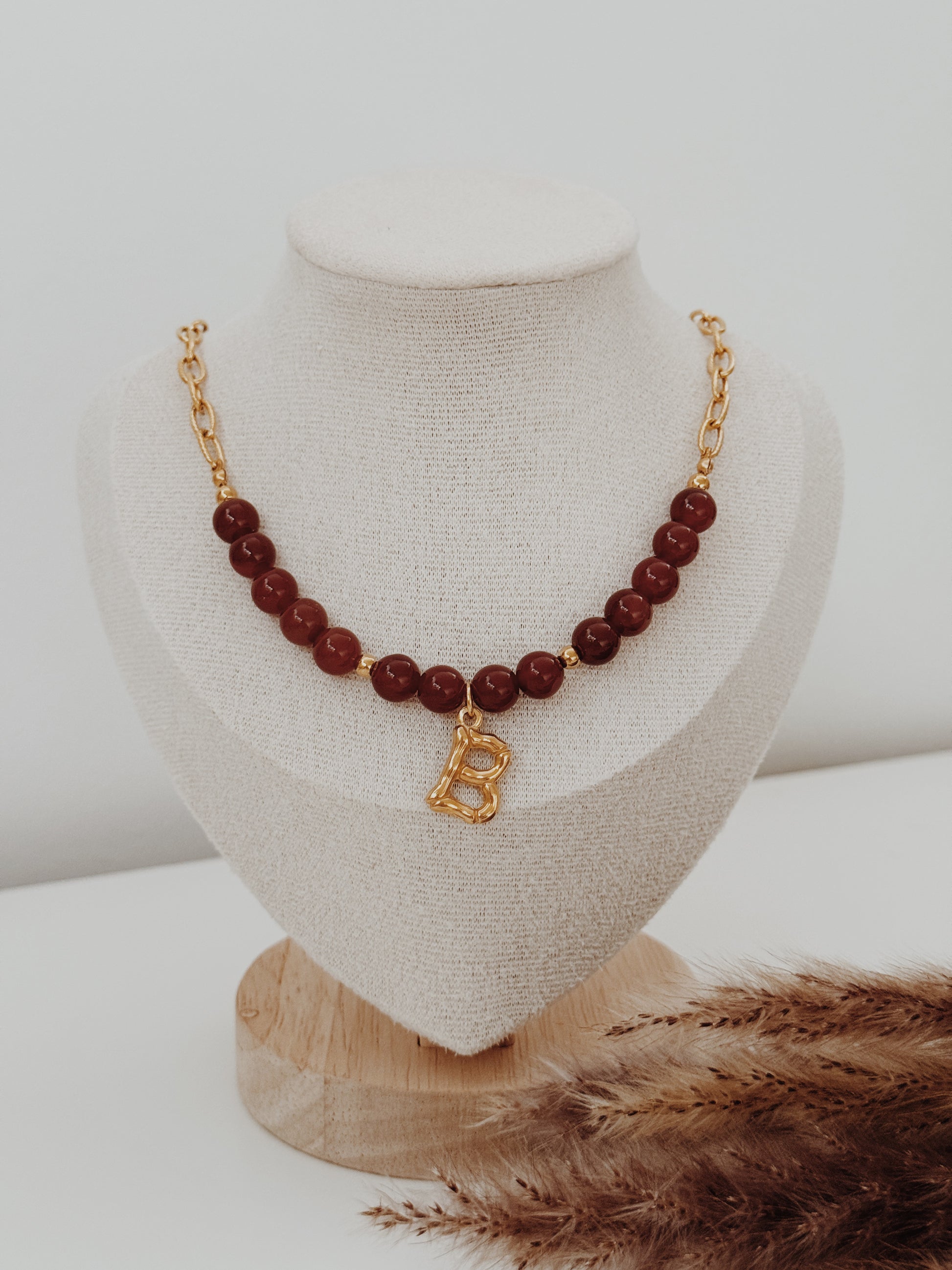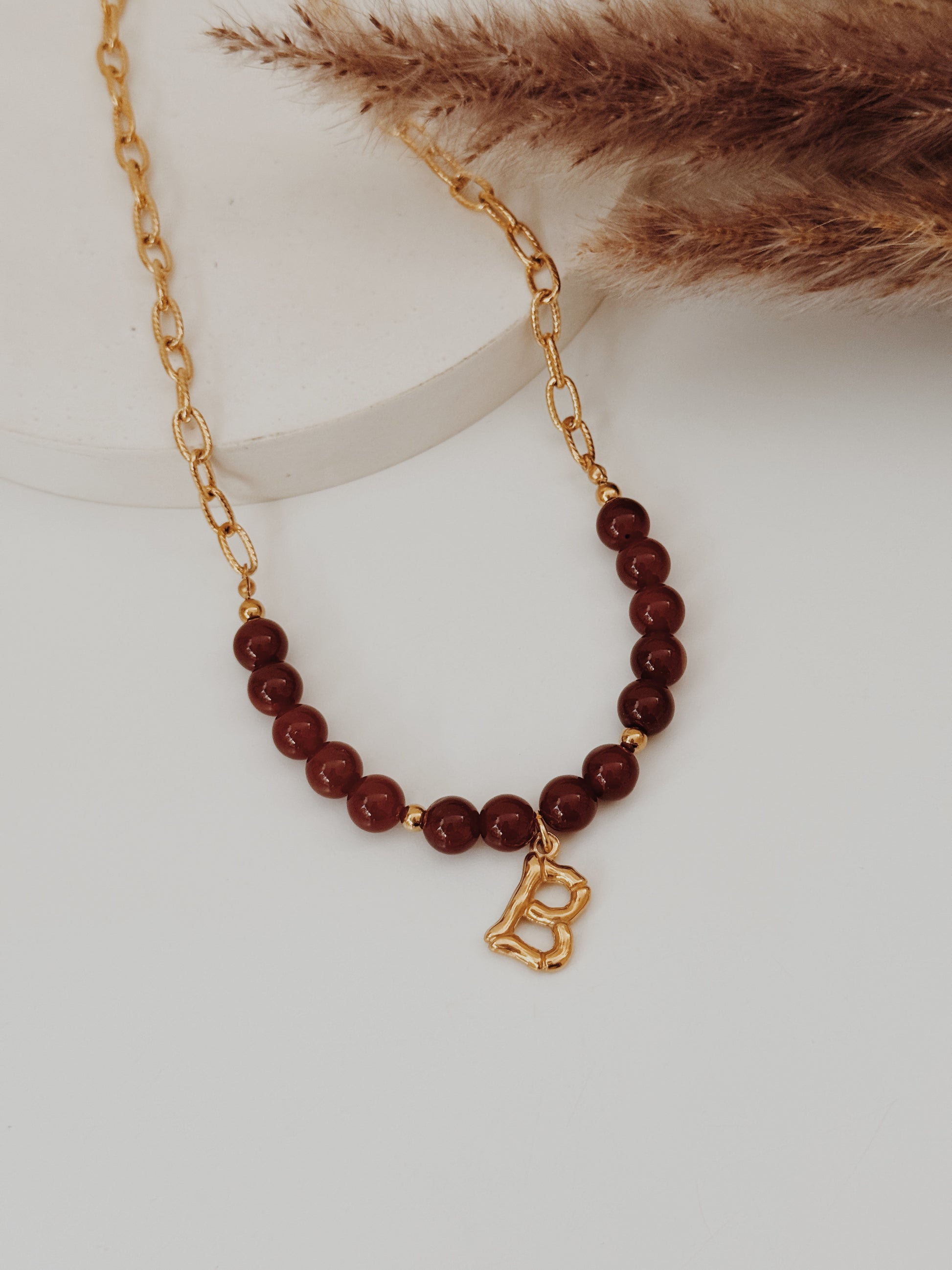 A Cornalina é o cristal da vitalidade, da motivação e da confiança, a energia que mantém o fogo aceso mesmo nos dias frios. Este colar une a força deste cristal à tua inicial, criando uma peça personalizada e cheia de simbolismo.