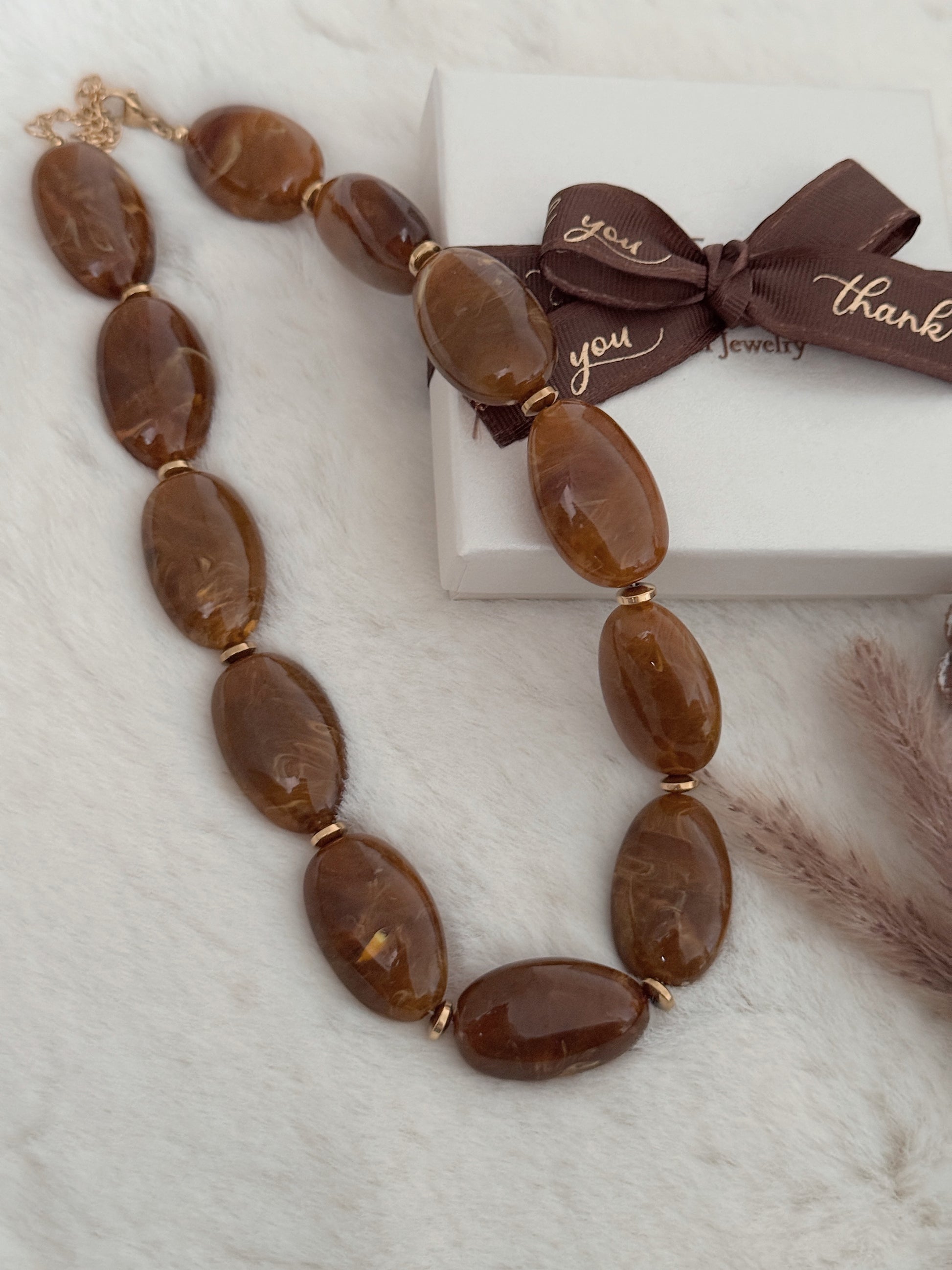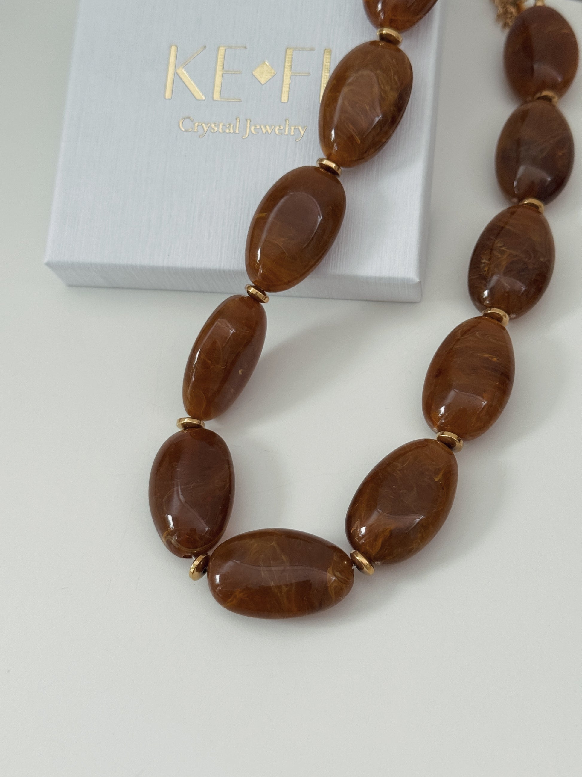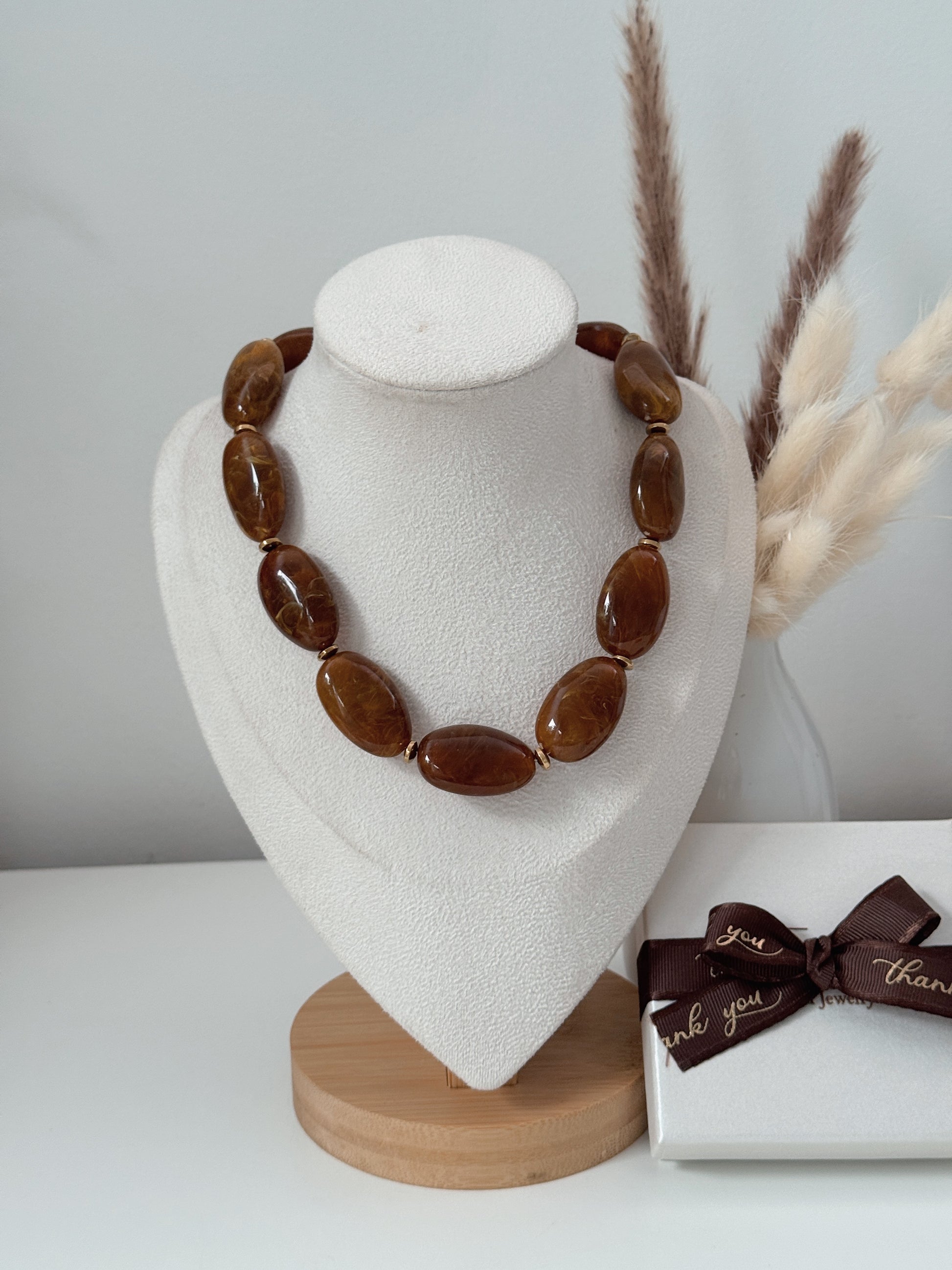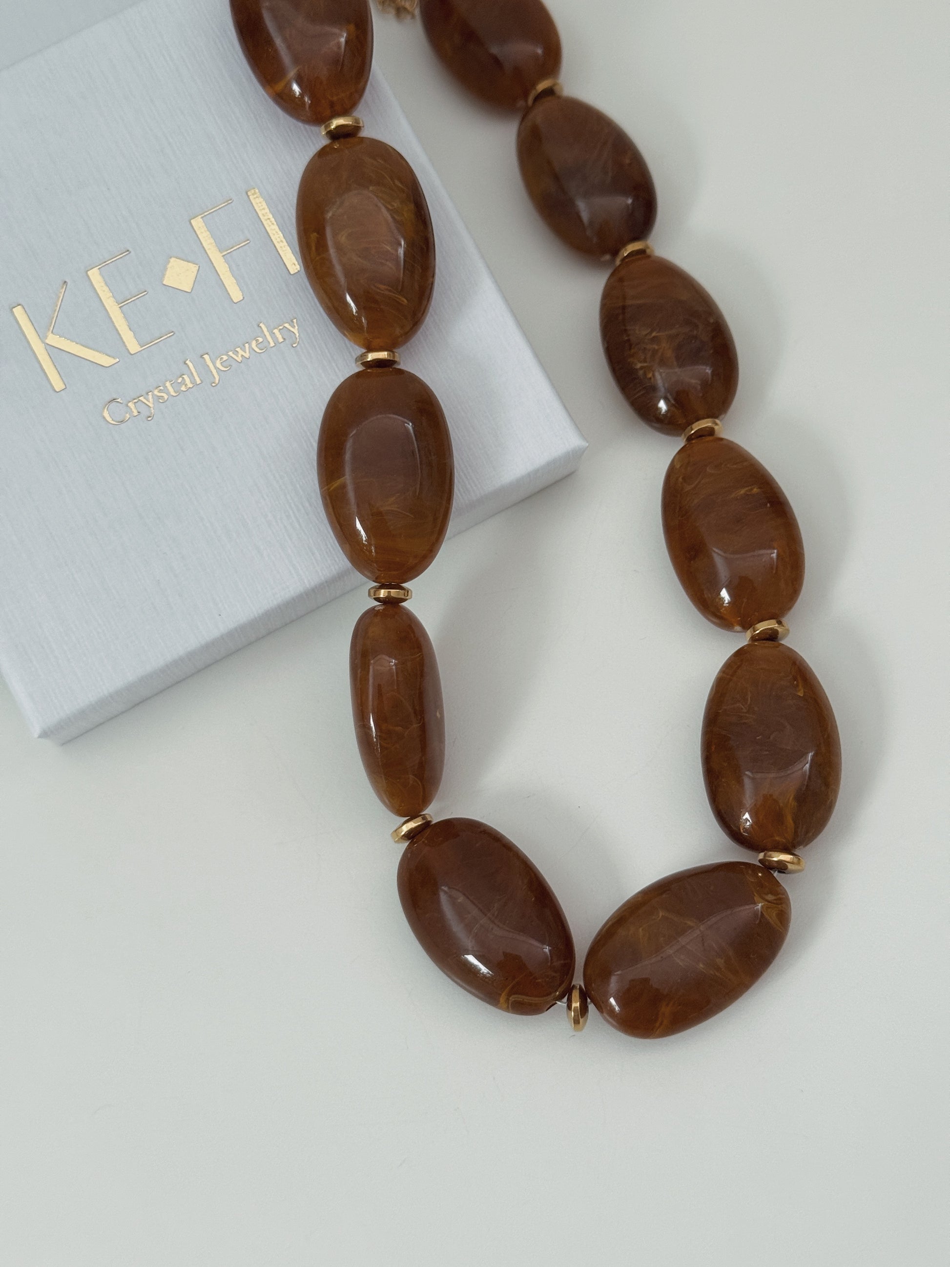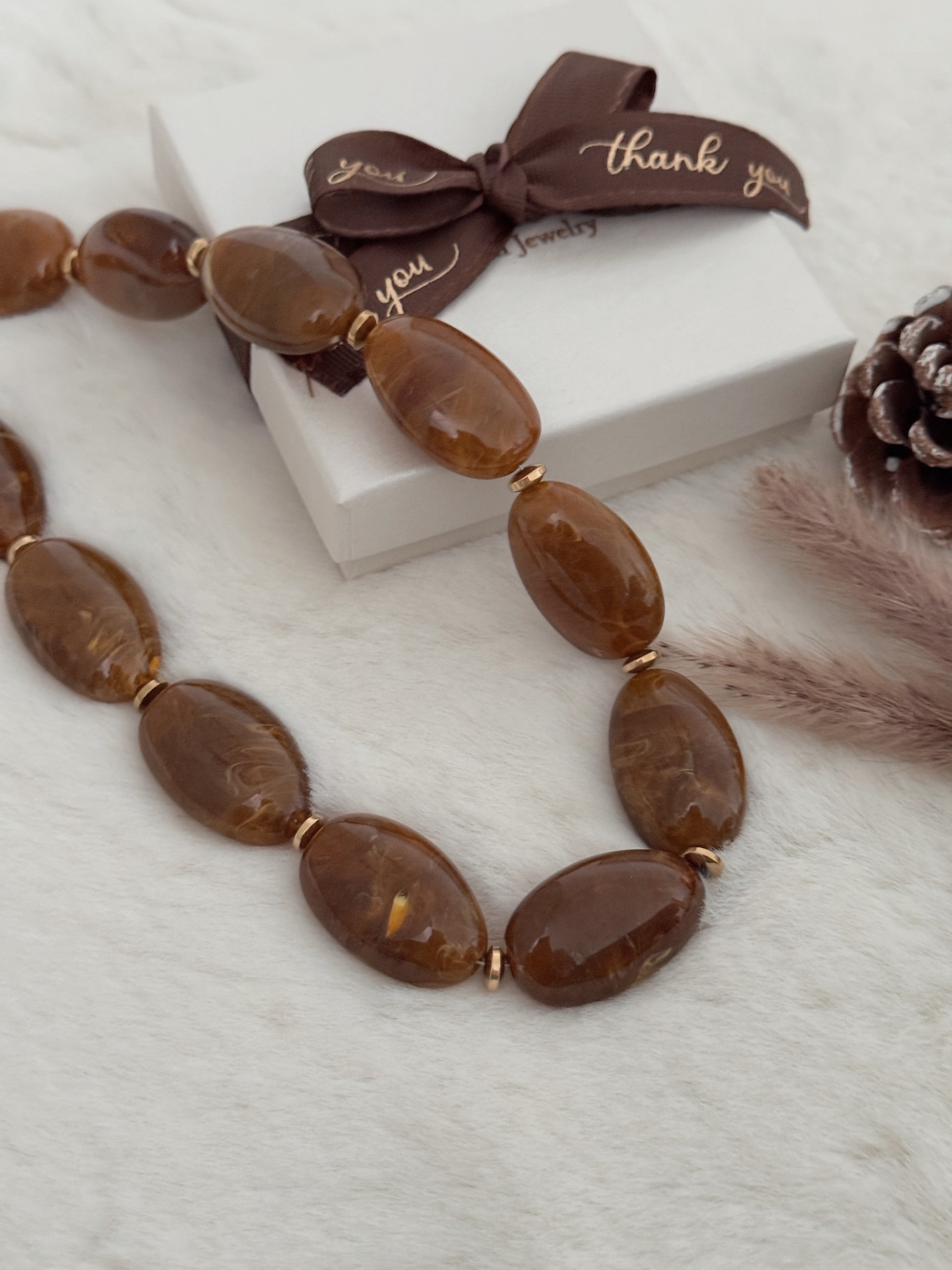 O colar Elea é inspirado nas cores suaves da terra e na tranquilidade das paisagens outonais. As suas contas em tons de castanho claro, evocam o calor do sol de fim de tarde e a fluidez das transformações da estação. Com um design natural e harmonioso, é uma peça que transmite paz, leveza e conexão com a natureza, um verdadeiro símbolo da essência do outono.