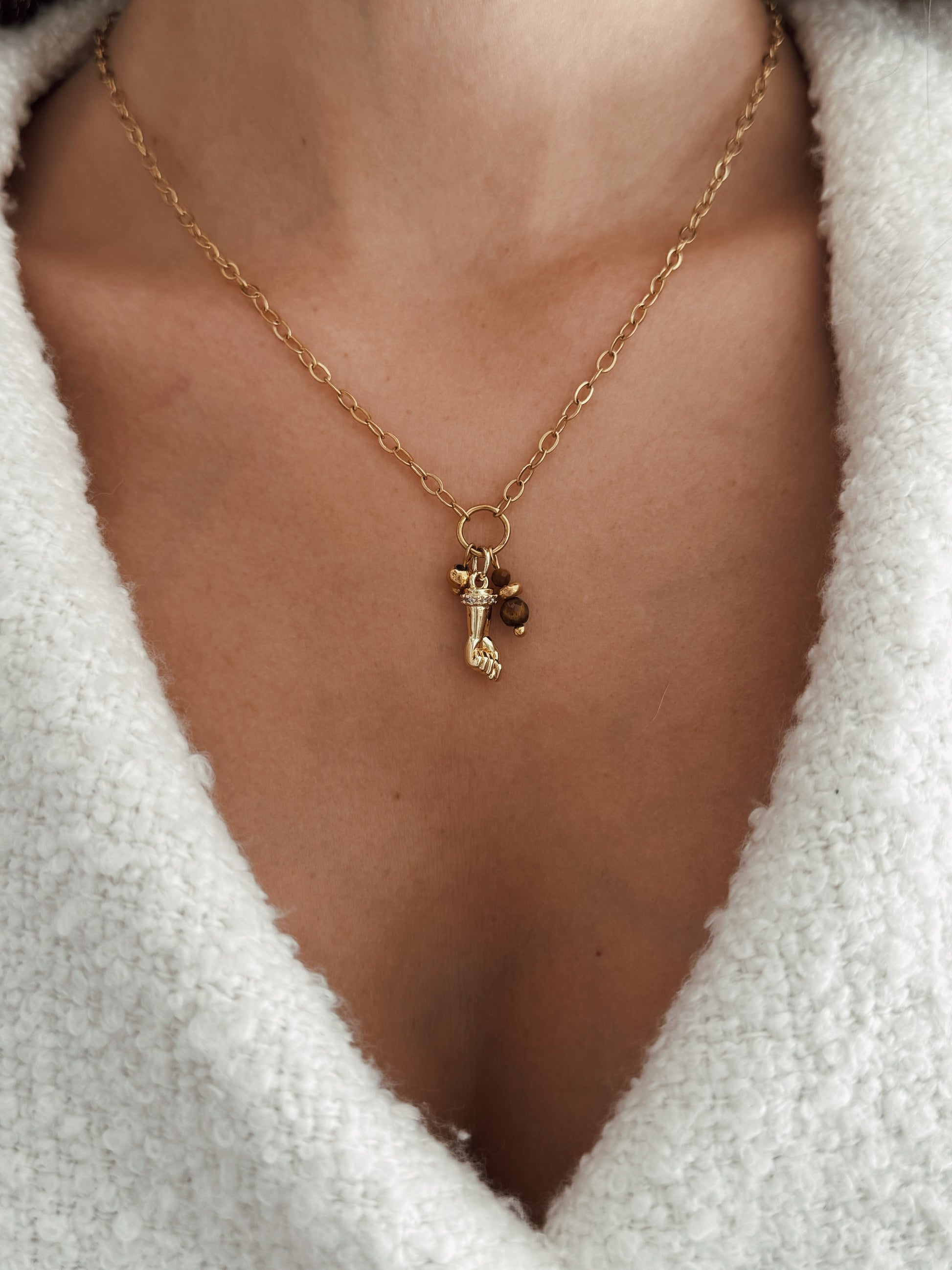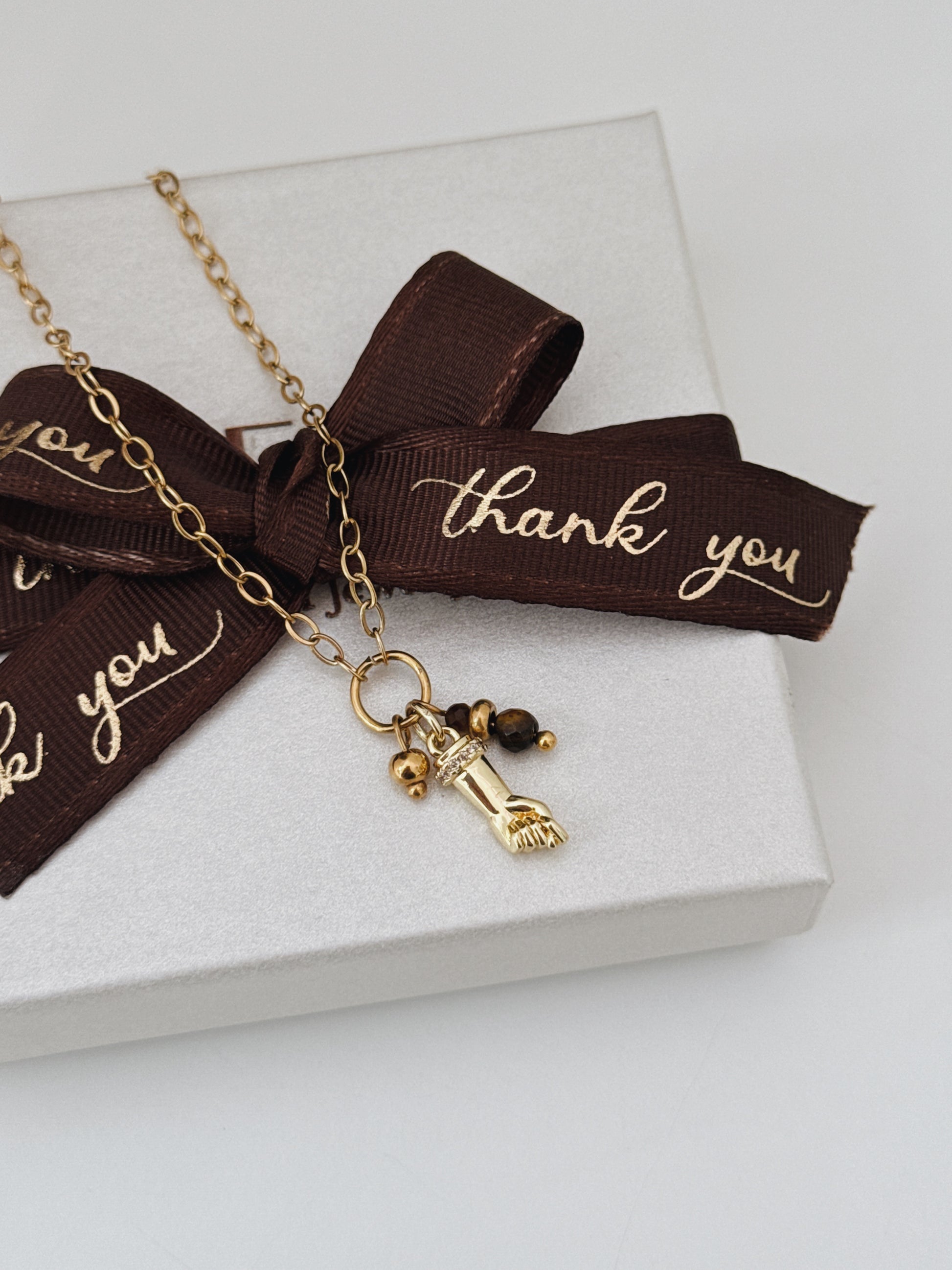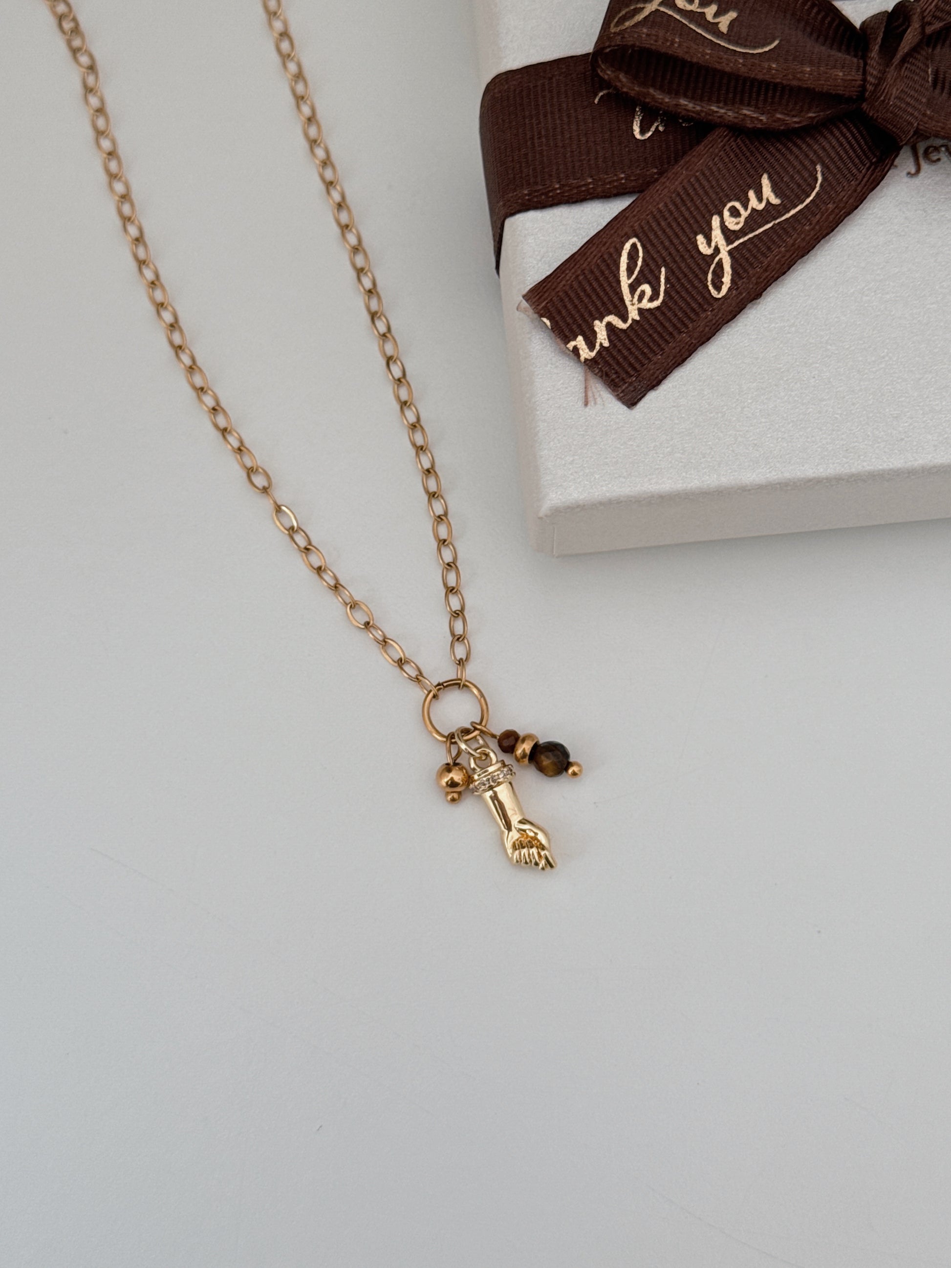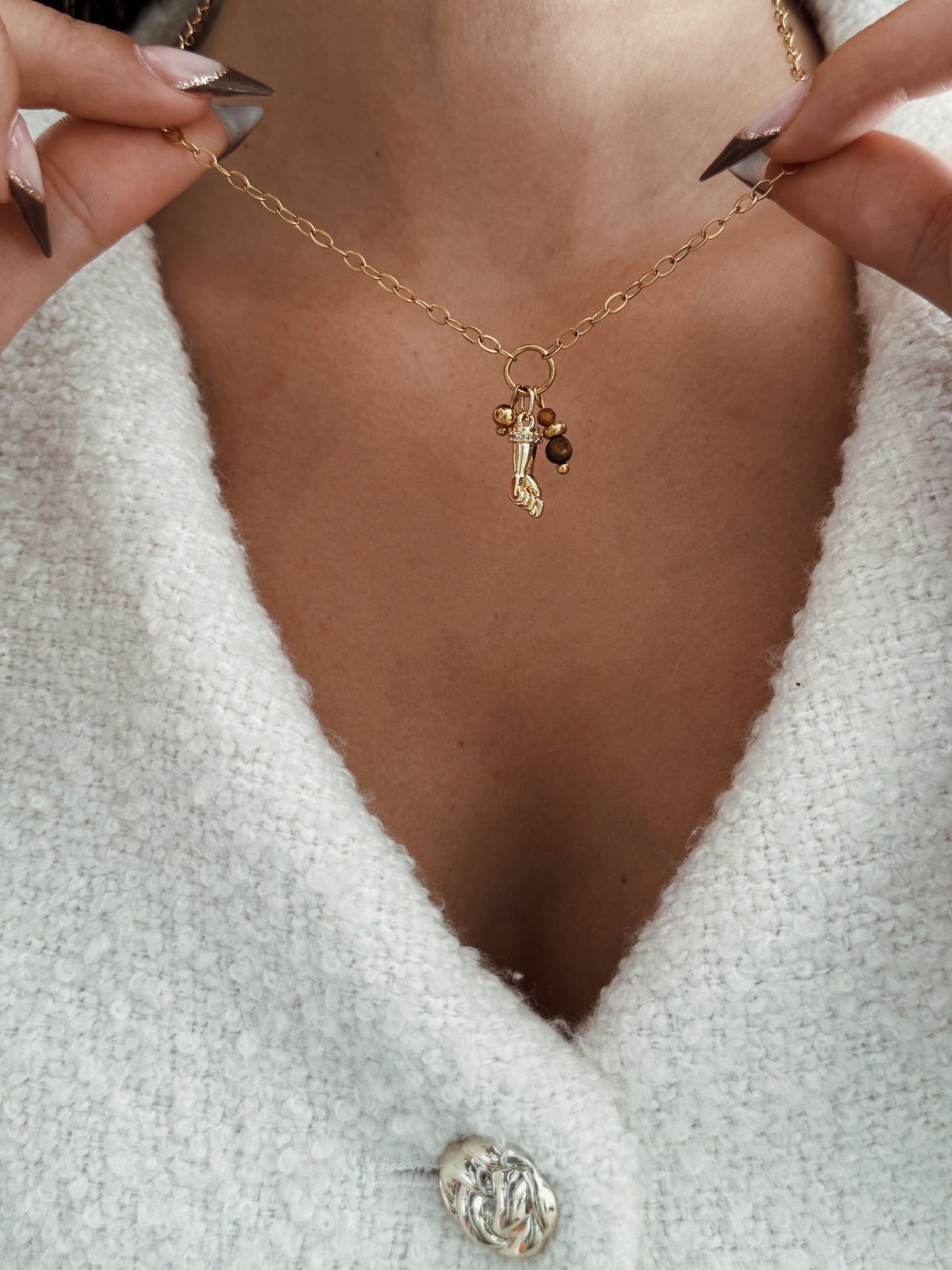 Criado para espíritos corajosos, o Colar Guardian combina a irreverência da fisga com a força do Olho de Tigre, um cristal que ativa a coragem, foco e proteção energética.