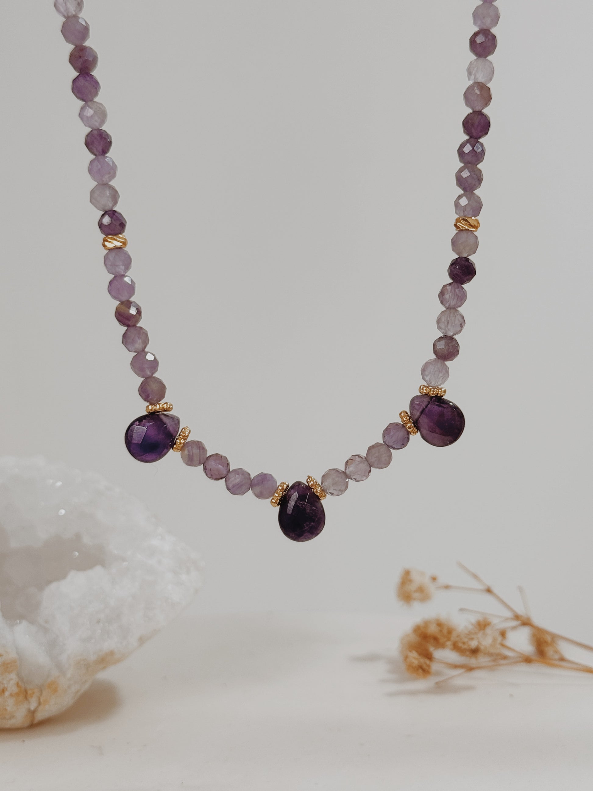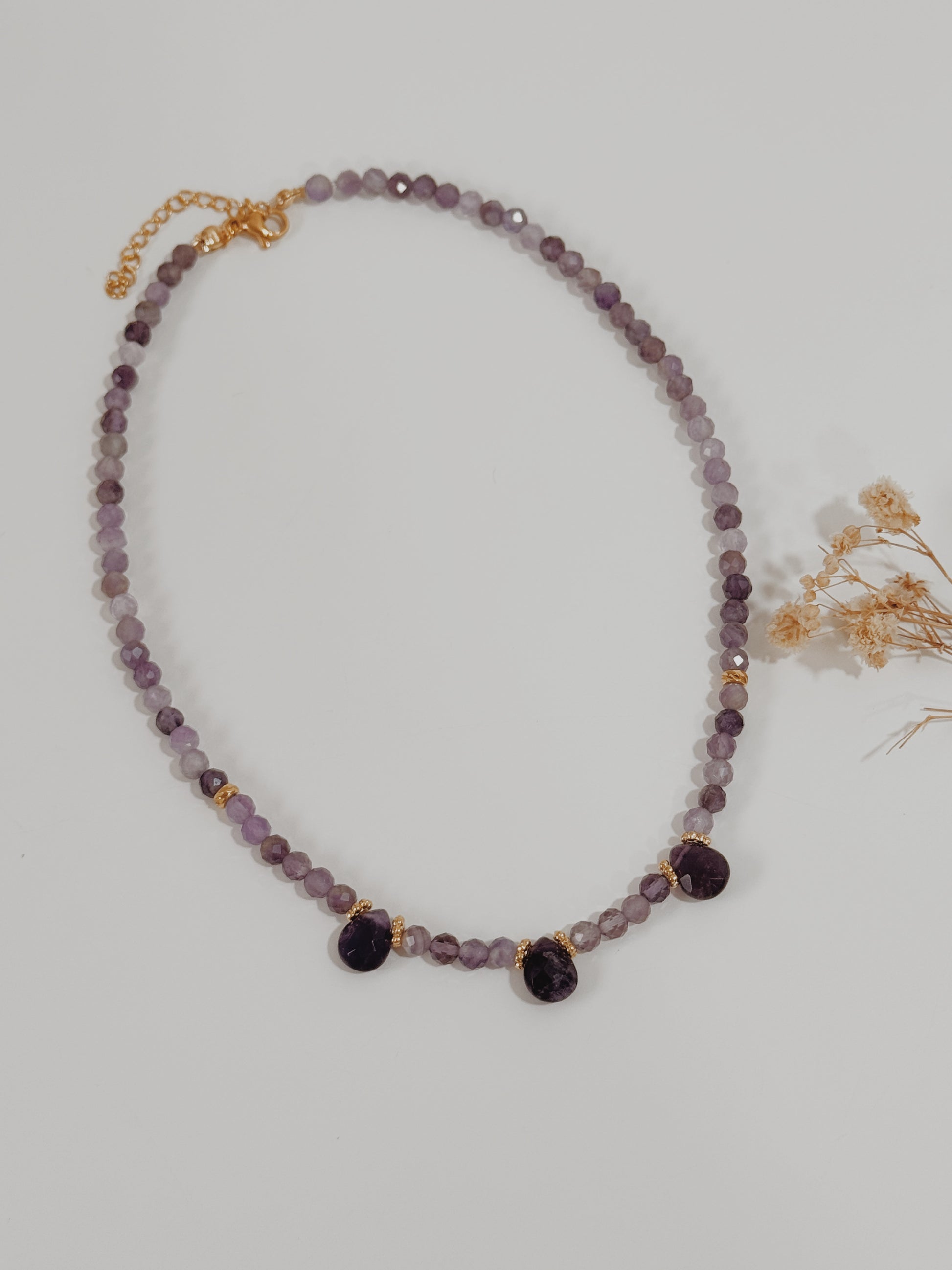 O Colar Hanah Ametista é um verdadeiro talismã para quem procura serenidade e paz interior. A cor roxa deste cristal evoca a calma e a espiritualidade.