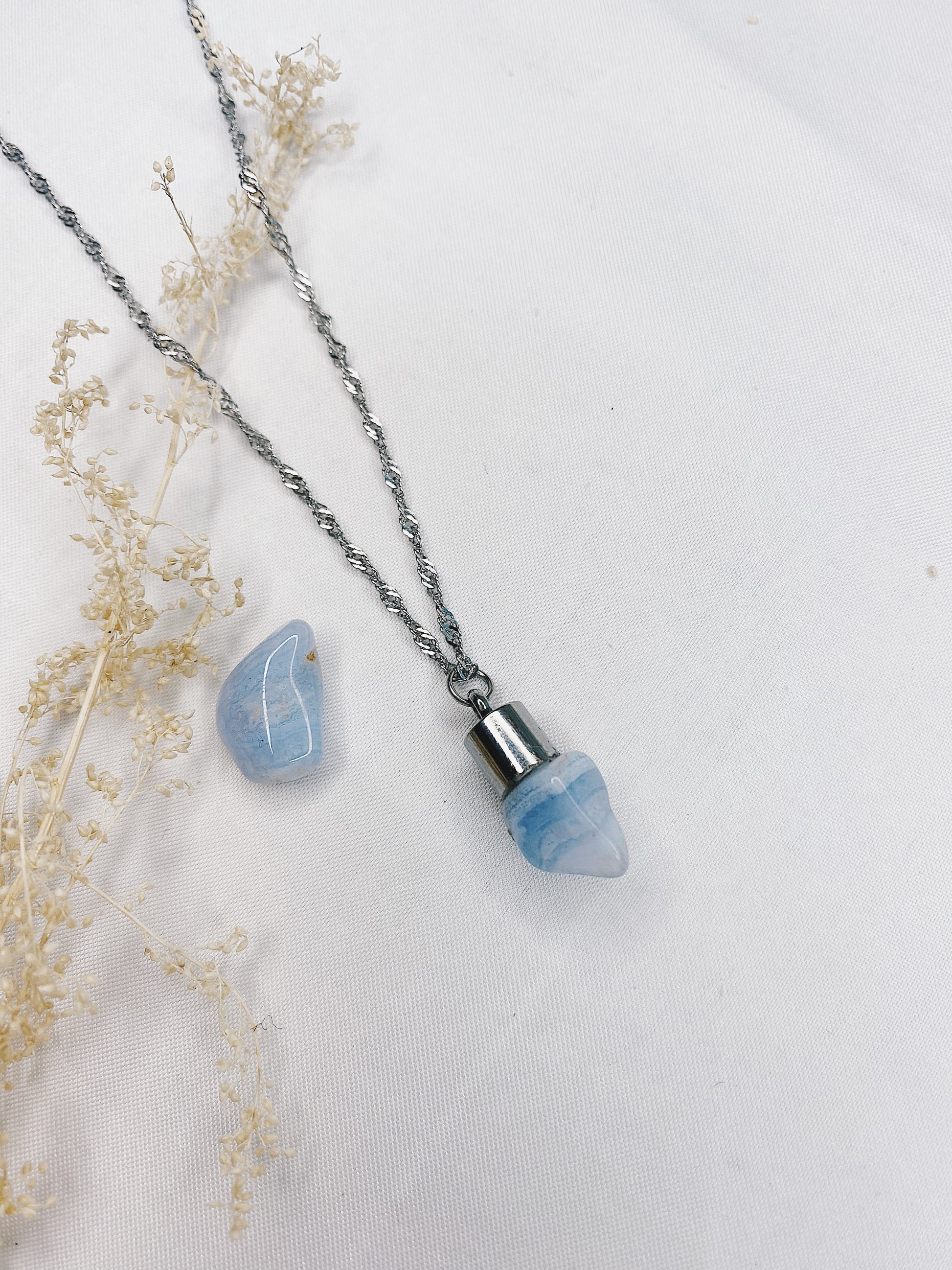 Adorável e calmante Agata Azul Rendada, ela ajuda-o a sentir-se mais tranquilo. É ideal para ter por perto sempre que precisar de parar, respirar e concentrar-se. Promovendo a paz na mente.