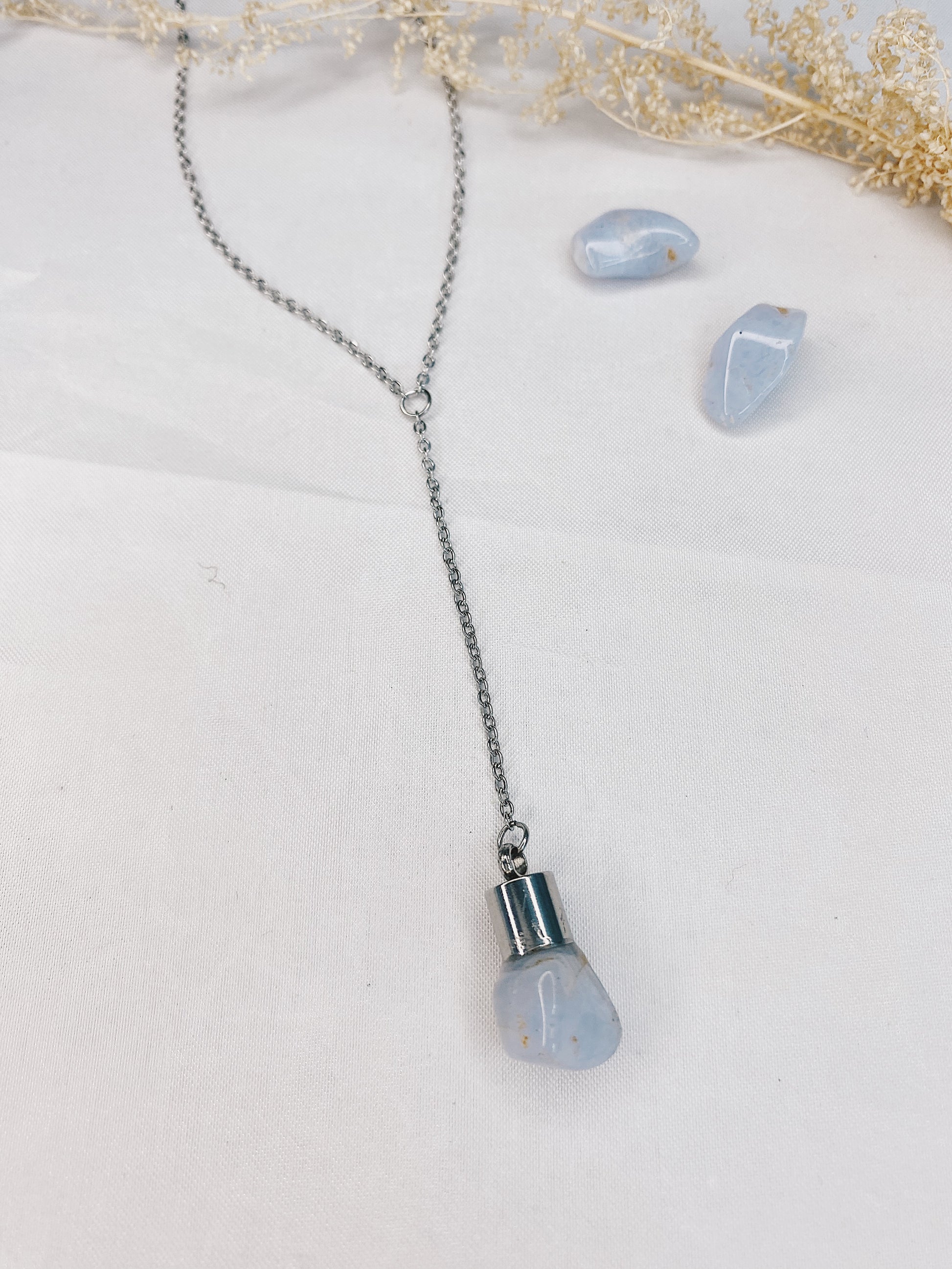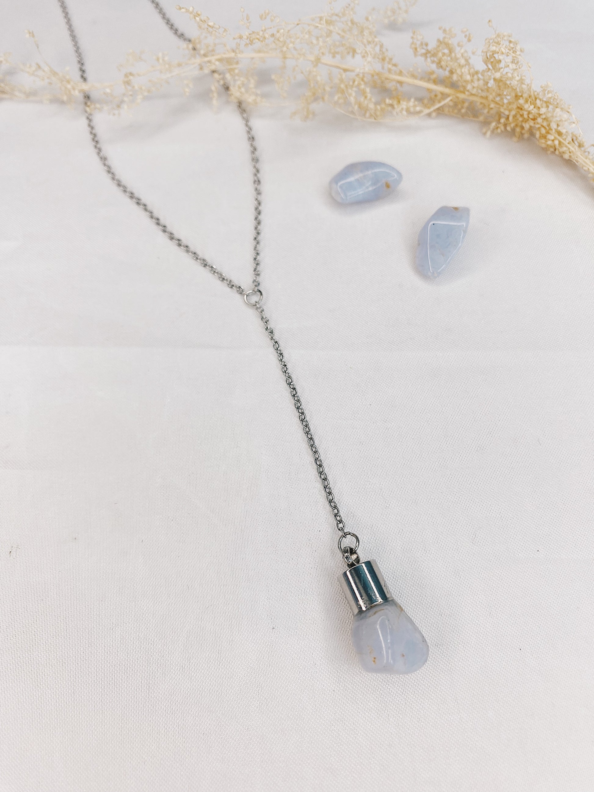 Adorável e calmante Agata Azul Rendada, ela ajuda-o a sentir-se mais tranquilo. É ideal para ter por perto sempre que precisar de parar, respirar e concentrar-se. Promovendo a paz na mente.