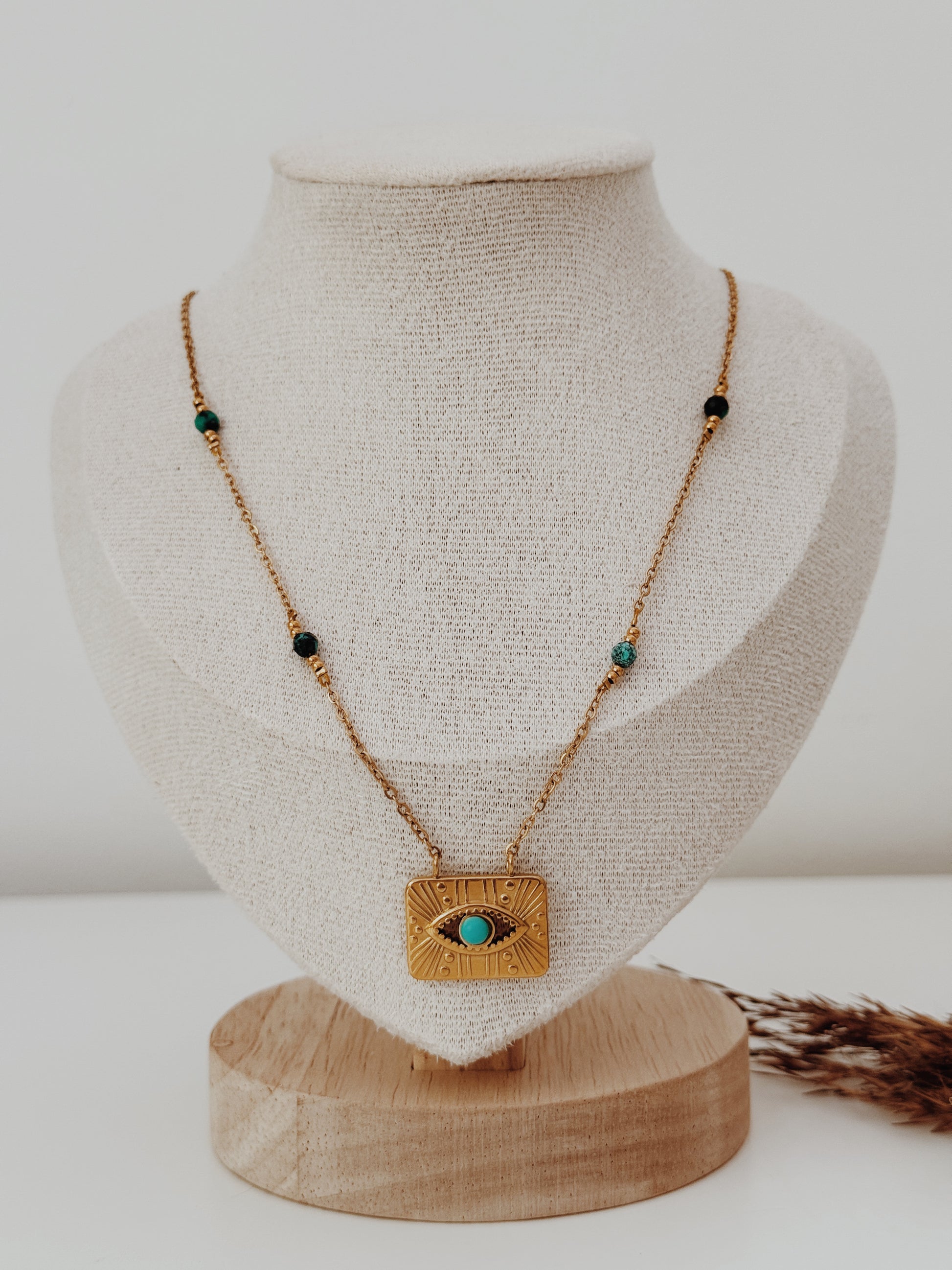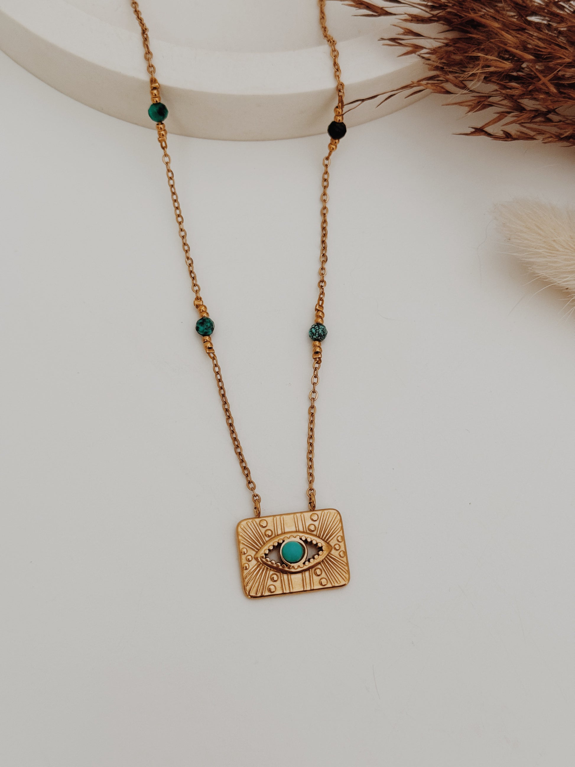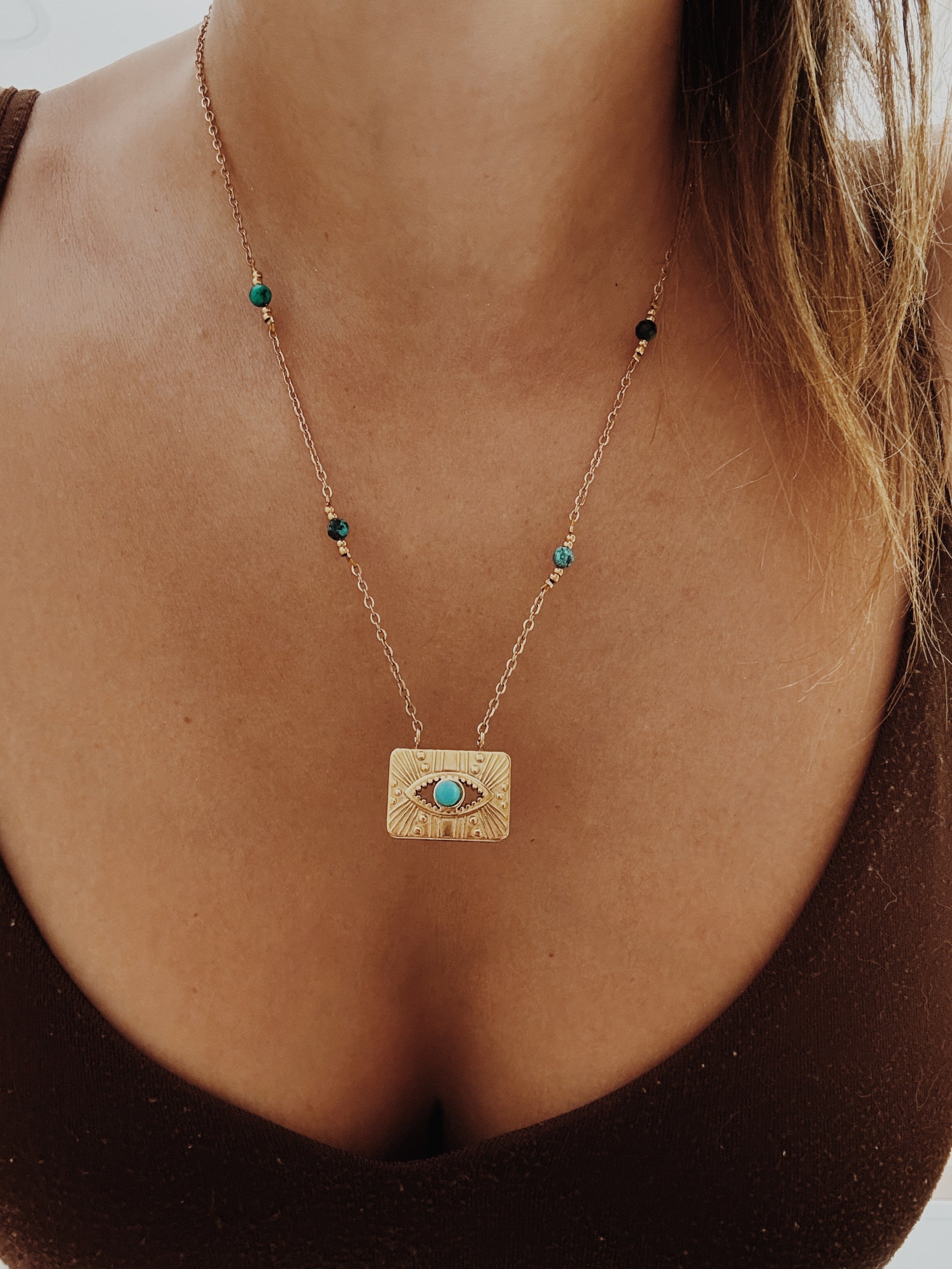 Descobre a energia suave e transformadora deste colar, que combina a Turquesa, pedra de proteção, energia positiva e comunicação clara, com a Crisocola, conhecida por acalmar emoções trazer equilíbrio interior.