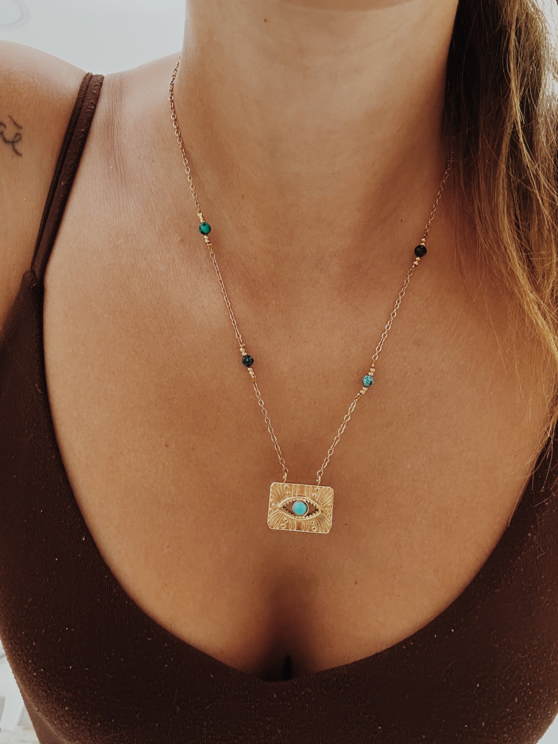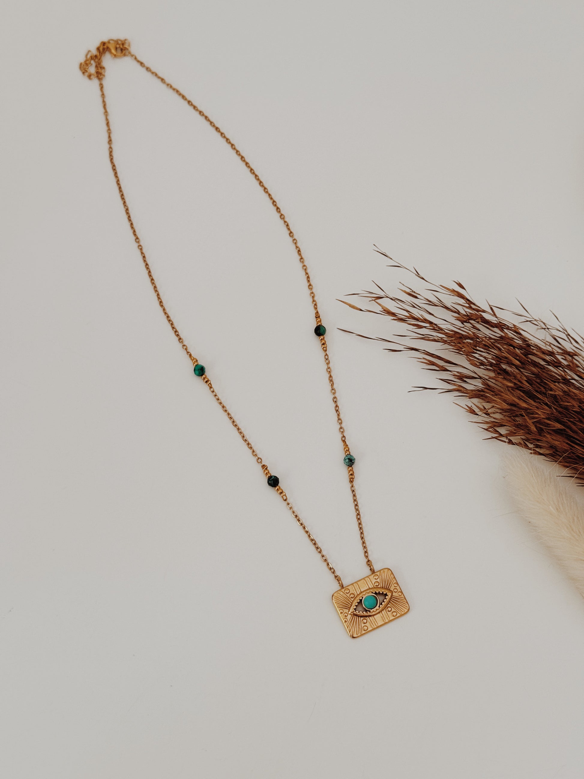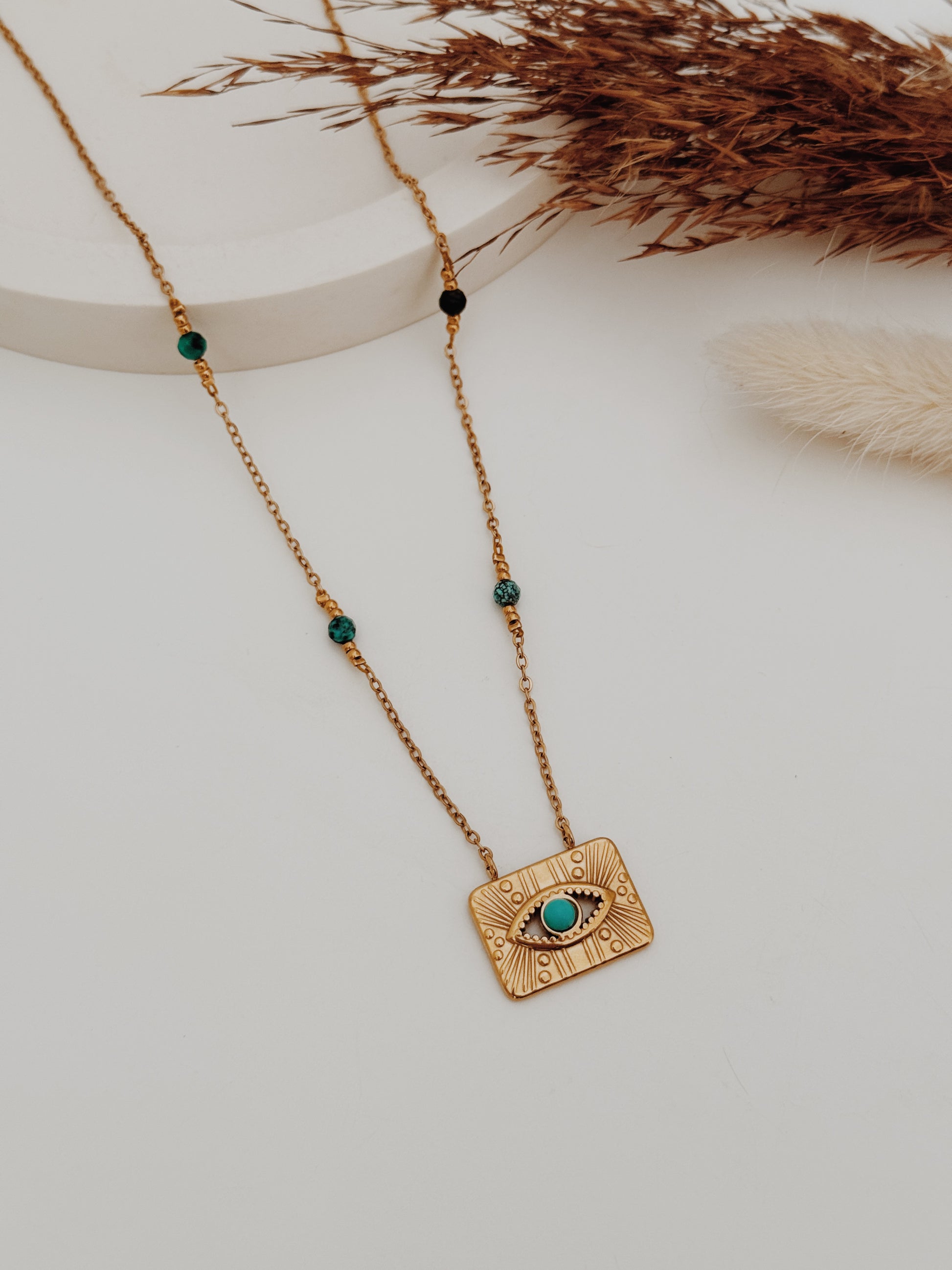 Descobre a energia suave e transformadora deste colar, que combina a Turquesa, pedra de proteção, energia positiva e comunicação clara, com a Crisocola, conhecida por acalmar emoções trazer equilíbrio interior.