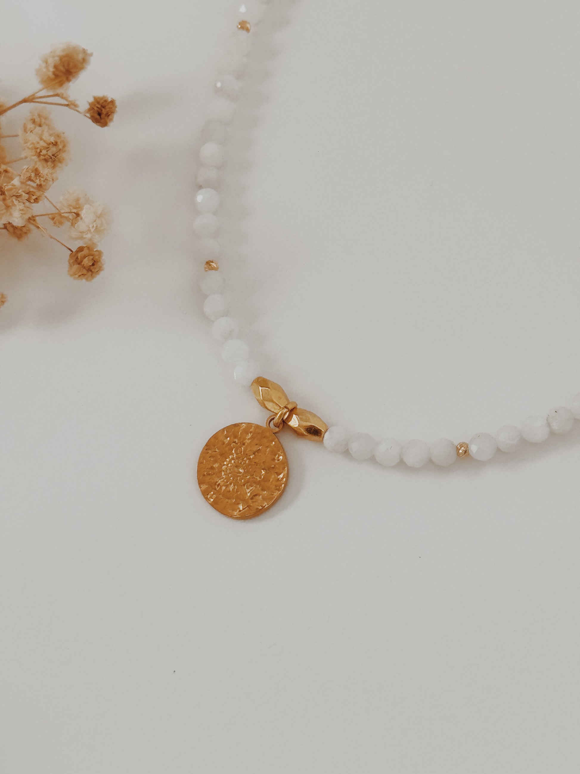 Conhecida por acalmar as emoções, promover o equilíbrio interior, favorecer a conexão com a nossa intuição e abrir portas aos novos começos e às novas oportunidades, utilizares a Pedra da Lua é cercares-te de uma energia serena e reconfortante, que acalma as emoções, conecta-te com os ciclos naturais do corpo e da mete, oferecendo um apoio valioso durante as mudanças da tua vida.