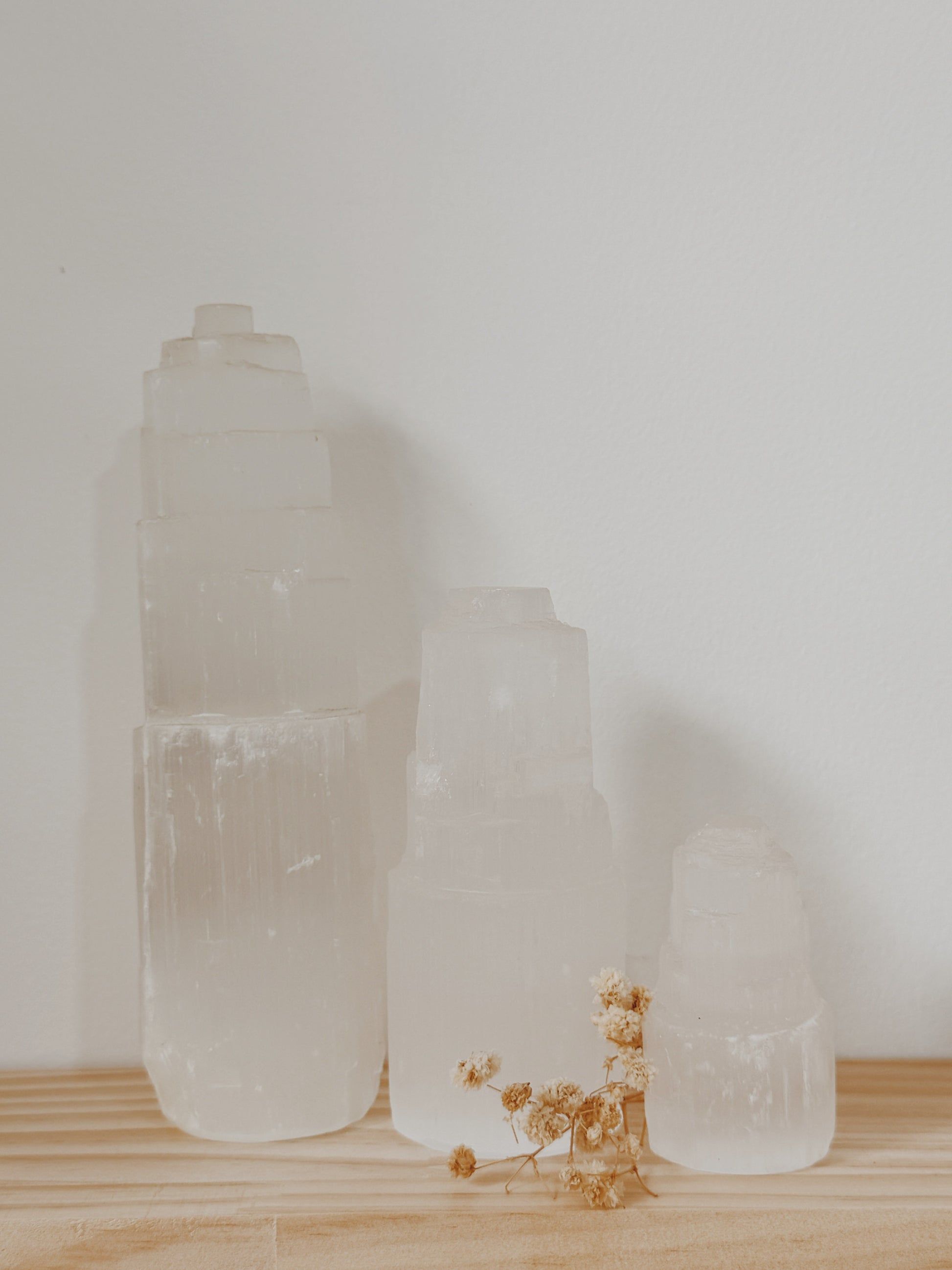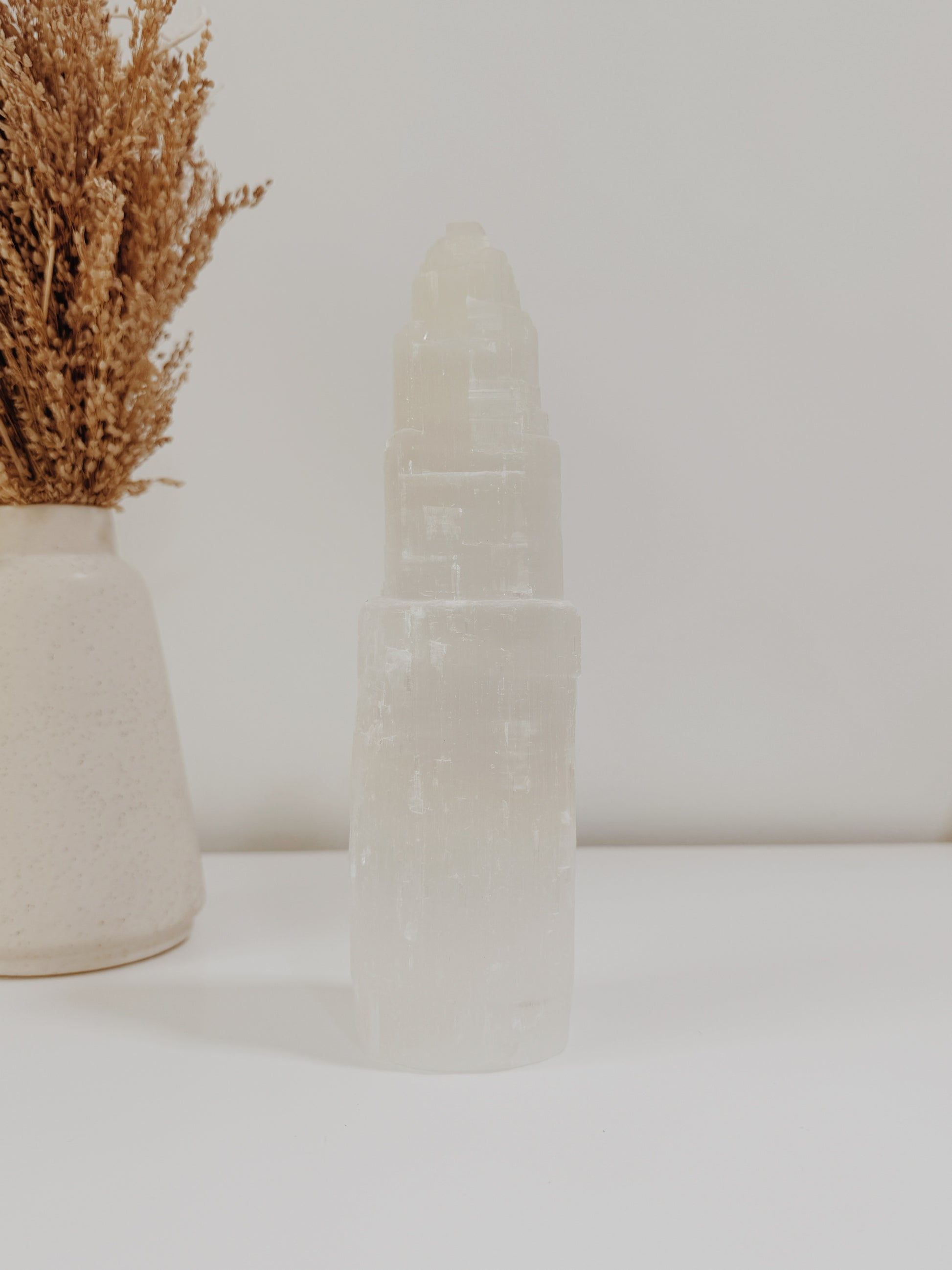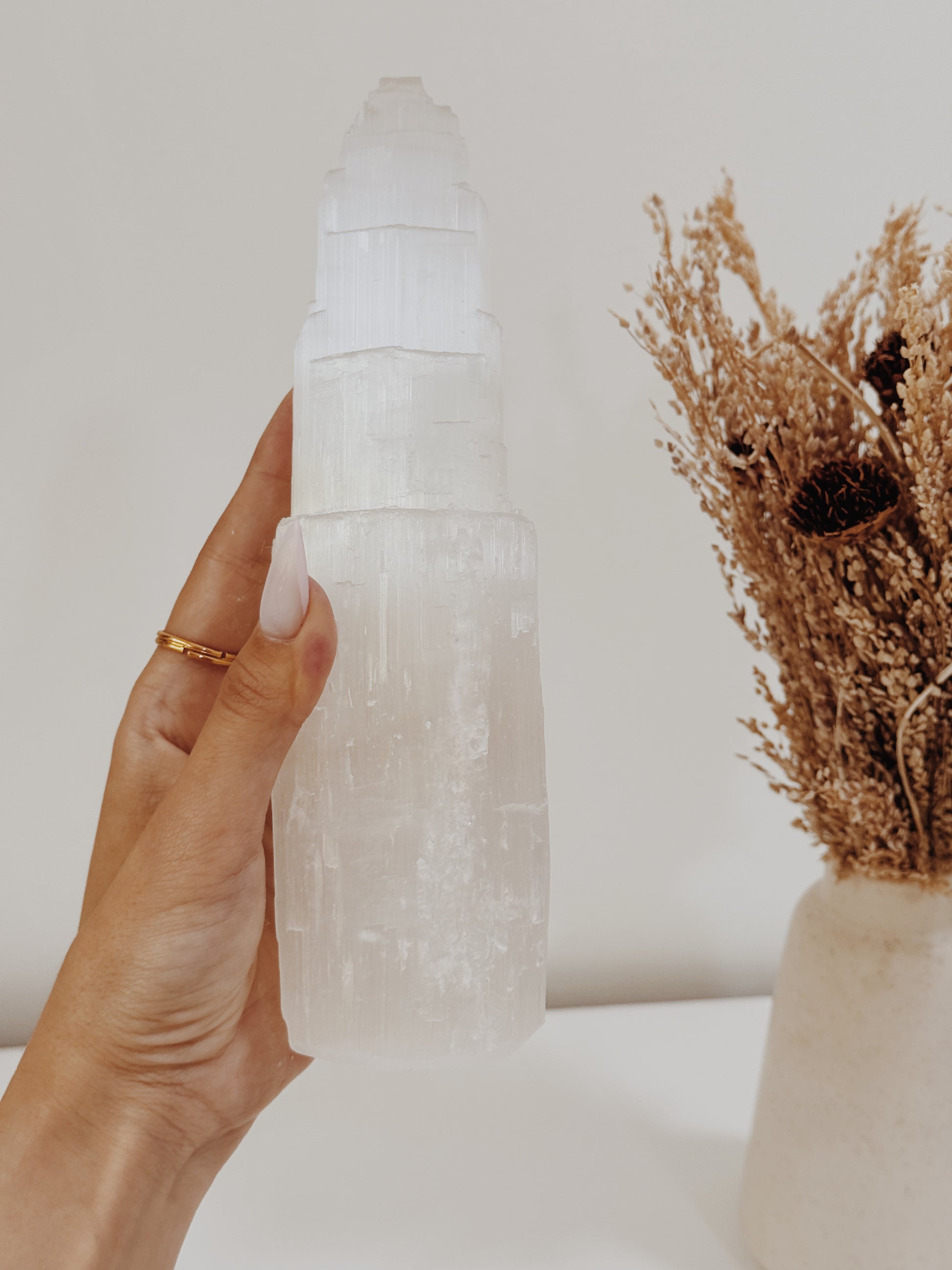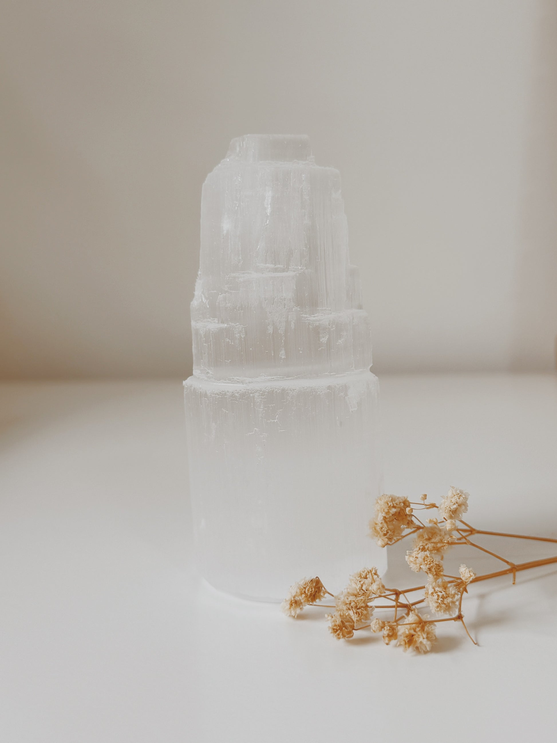 As Torres de selenite são perfeitas para limpar e purificar o ambiente de uma divisão de casa, espaço ou trabalho e tem a capacidade de limpar outras pedras e cristais.